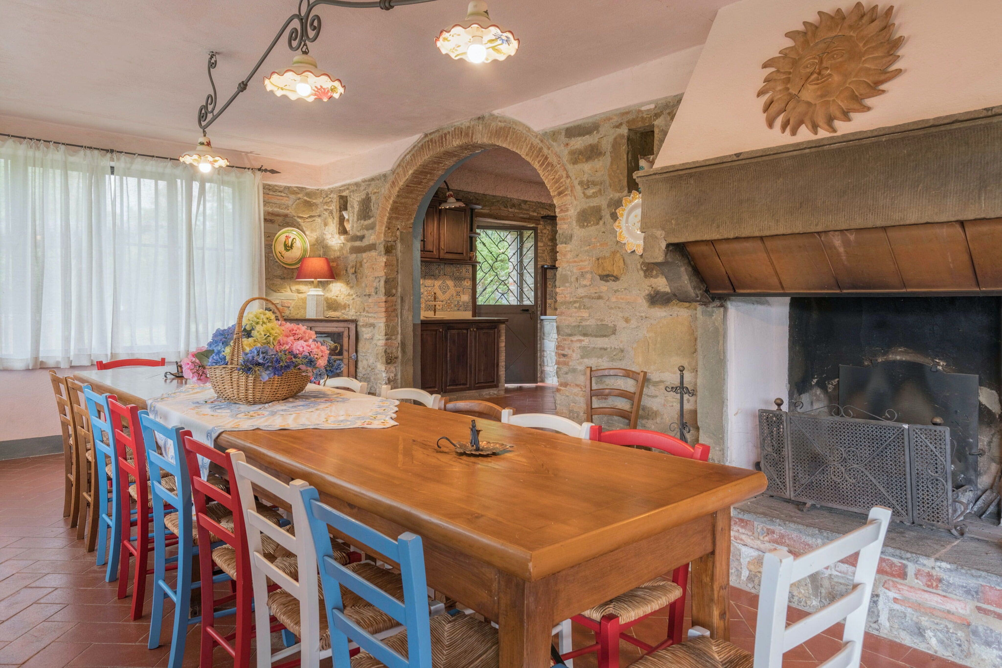 For those seeking a quintessential house rental in Tuscany, this impressive property in Val di Chiana offers an exceptional blend of traditional charm and modern convenience. Nestled in the picturesque landscape of Tuscany, this nine-bedroom estate is perfect for large groups and families looking to immerse themselves in the serene Italian countryside.