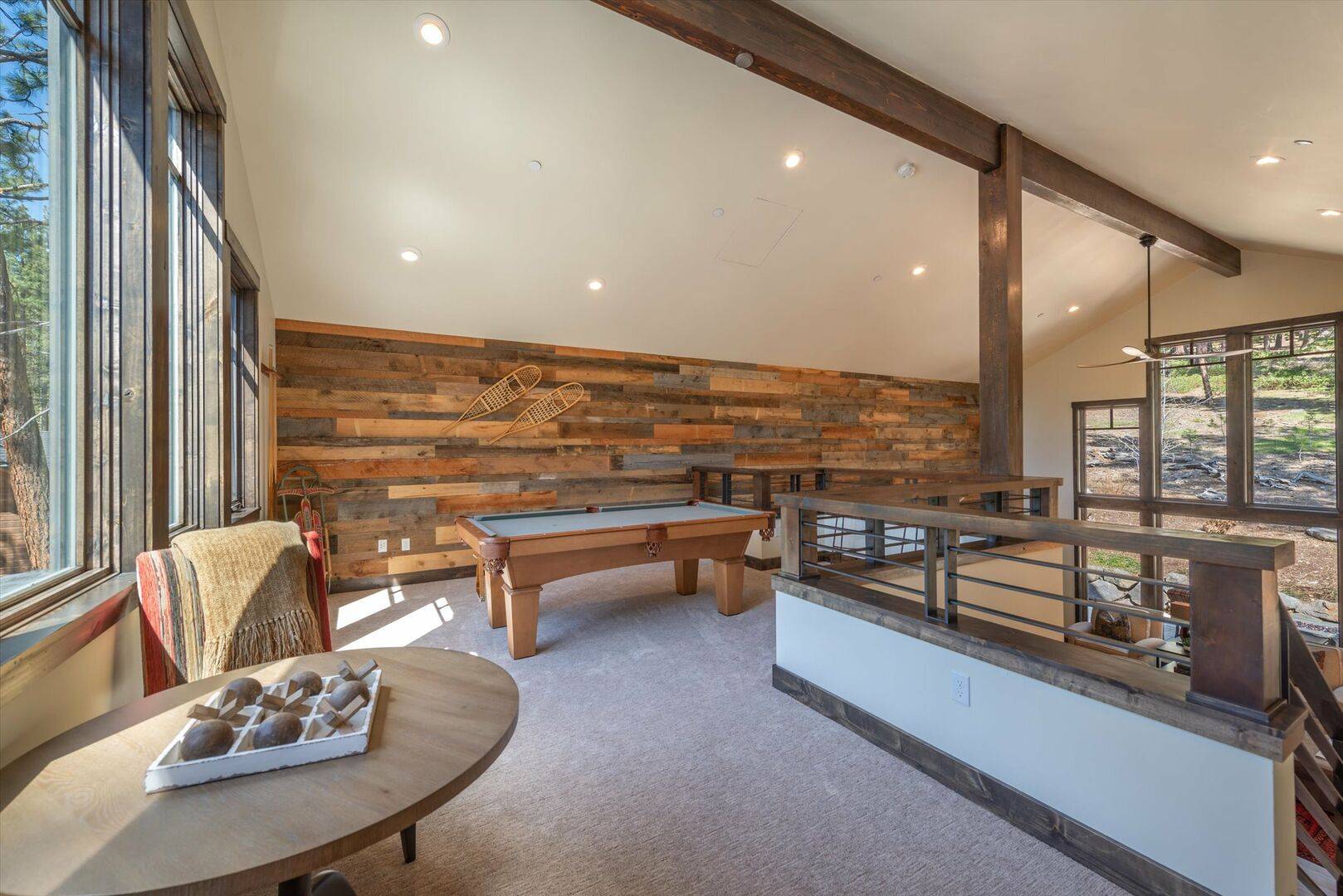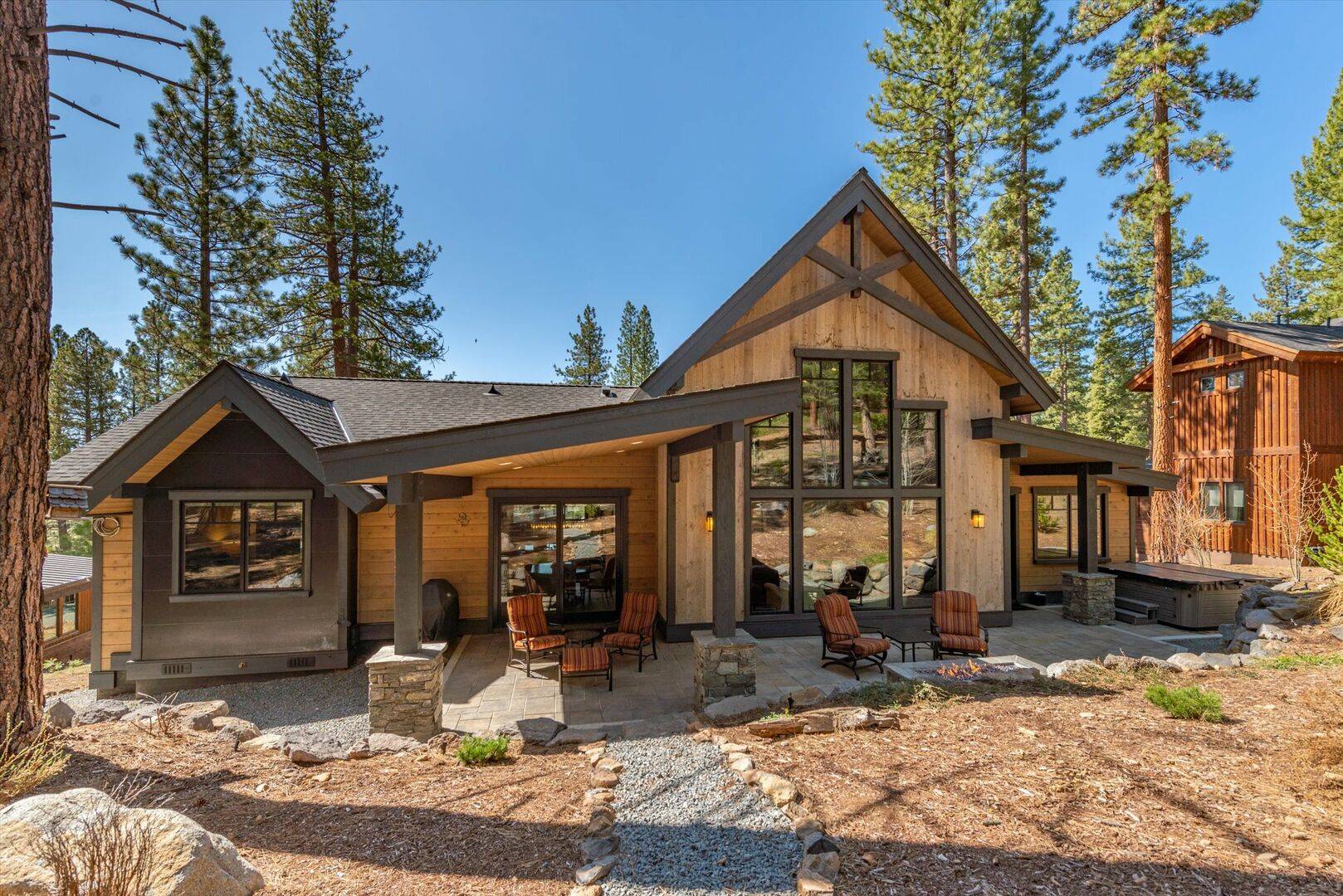 Located in Truckee, this luxury villa rental provides easy access to a host of outdoor activities and attractions. In the winter months, the nearby Northstar California Resort, just a ten-minute drive away, offers world-class skiing and snowboarding. During the summer, explore the breathtaking hiking trails and pristine lakes that surround the area. The charming town of Truckee features delightful shops, restaurants, and local breweries, making it a perfect spot for an afternoon stroll. For those looking to explore further, the stunning shores of Lake Tahoe are a mere 15 minutes away. Discover our full collection of luxury villa rentals in Truckee.