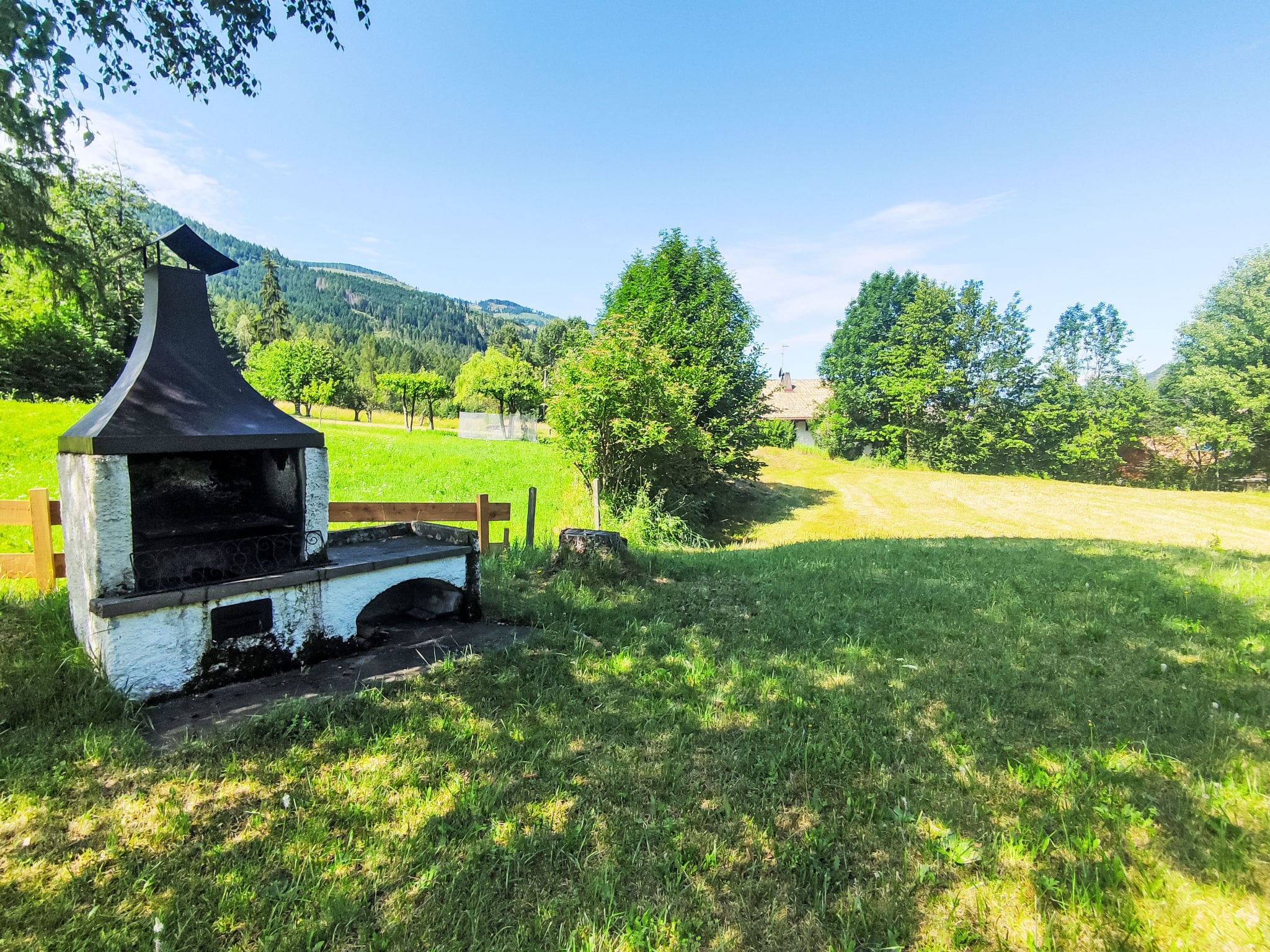 The garden features barbecue facilities perfect for al fresco dining, comfortable deck chairs for lazy afternoons, and a dedicated conservatory sitting area. The fenced grounds ensure complete privacy while the dramatic backdrop of mountains and forest creates an unforgettable setting for your alpine holiday.