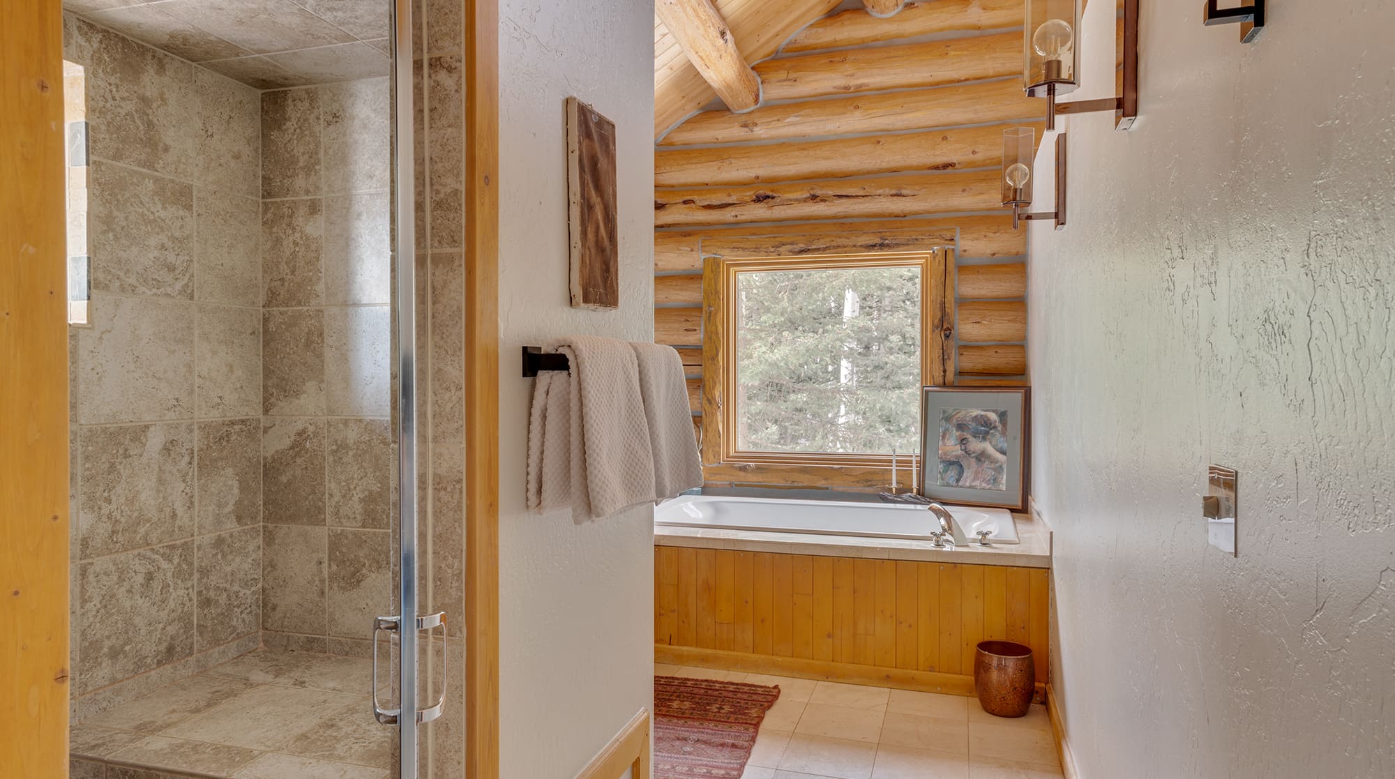 Step inside to discover a beautifully appointed interior featuring stylish design and modern amenities. The spacious living area is centered around a cozy three-sided fireplace, perfect for unwinding after a day on the slopes. Floor-to-ceiling windows and French doors flood the space with natural light, offering breathtaking mountain views. The well-equipped kitchen and dining area provide everything you need for memorable meals with family and friends. The master bedroom offers a deep soaking bath, while the second bedroom features charming bunk beds ideal for children.