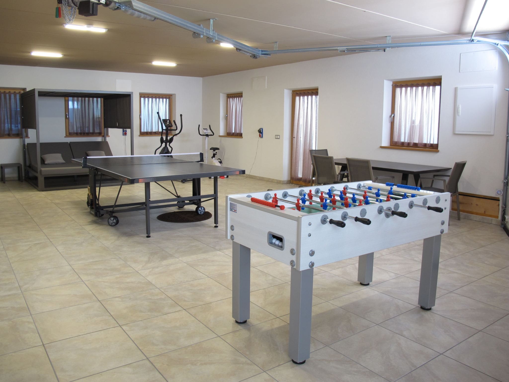 Table tennis and table football offer entertainment during quieter moments, while the extensive grounds provide safe outdoor play areas. The separate living areas on each level allow different groups within your party to maintain their own schedules while gathering for meals and activities.