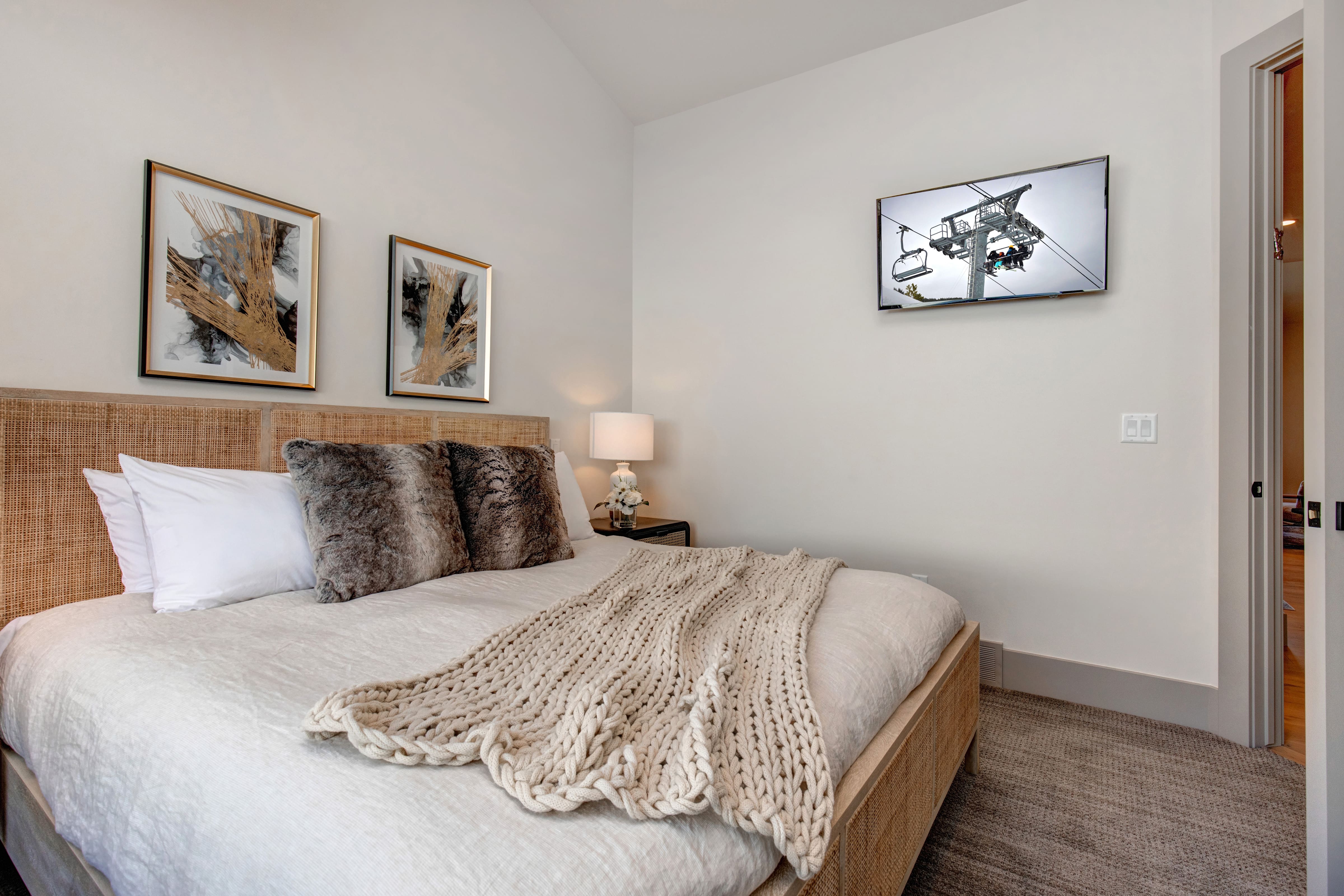 Step inside this exquisite ski chalet to find elegantly designed interior spaces that blend rustic charm with modern comforts. The open-plan living area boasts large windows that flood the space with natural light and offer stunning mountain views. A gourmet kitchen is equipped with top-of-the-line appliances, making it perfect for preparing hearty post-ski meals. The chalet features four sumptuous bedrooms, including a master suite with an en-suite bathroom, and a cozy day bed and trundle that are ideal for children.