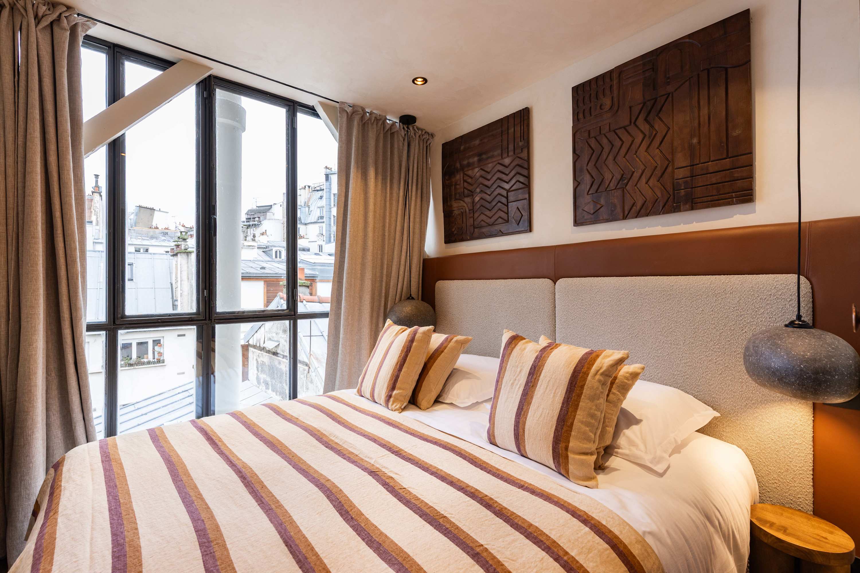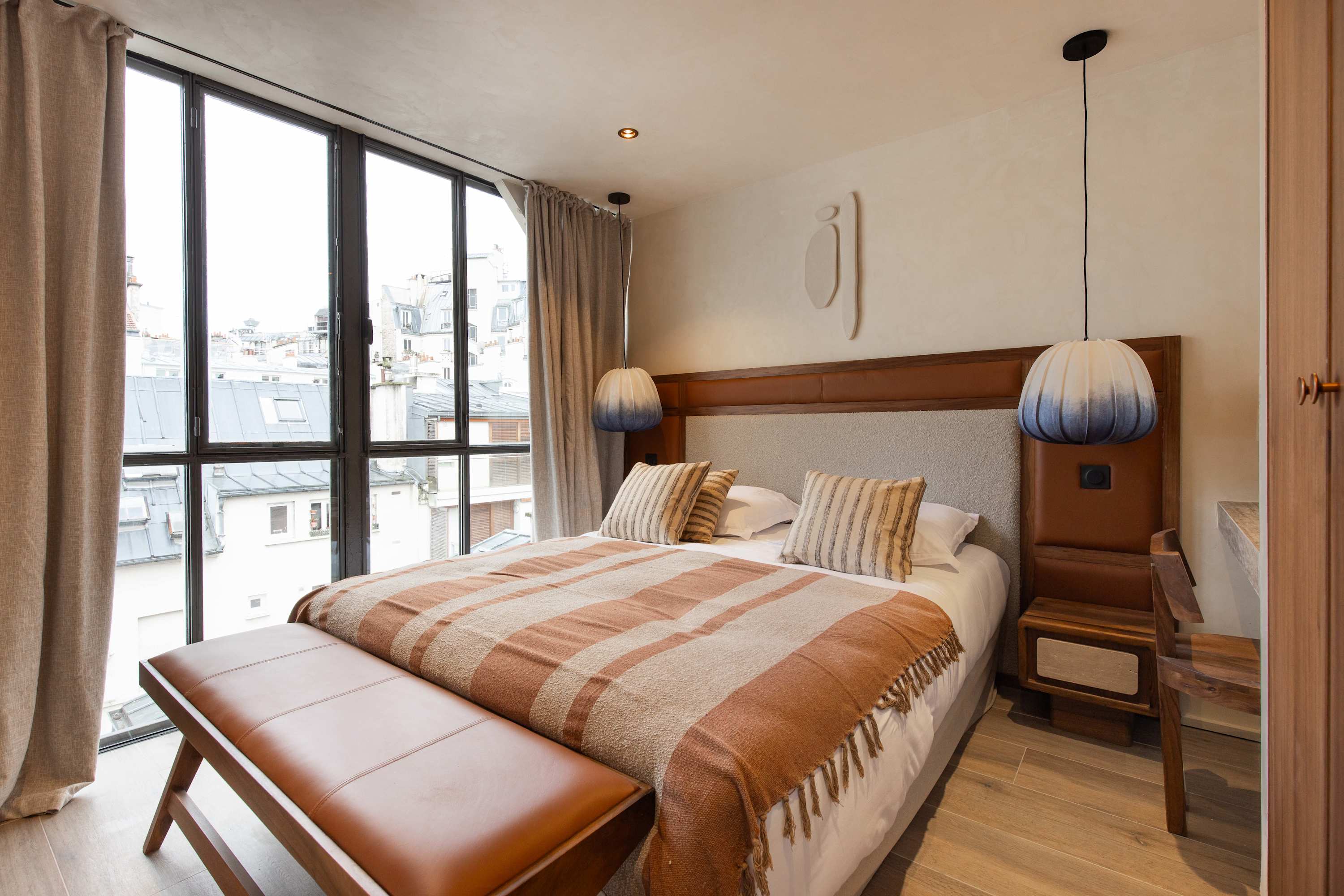 The townhouse’s interior is a harmonious blend of contemporary elegance and classic Parisian charm. Spanning two floors, each of the five boutique-style bedrooms features its own marble-clad en-suite bathroom, ensuring privacy and convenience for all guests. The living areas are designed for relaxation and socializing, with plush seating and tasteful decor. While the kitchen is well-equipped for preparing light meals, its compact size is perfect for Parisian-style breakfasts before you head out to explore.