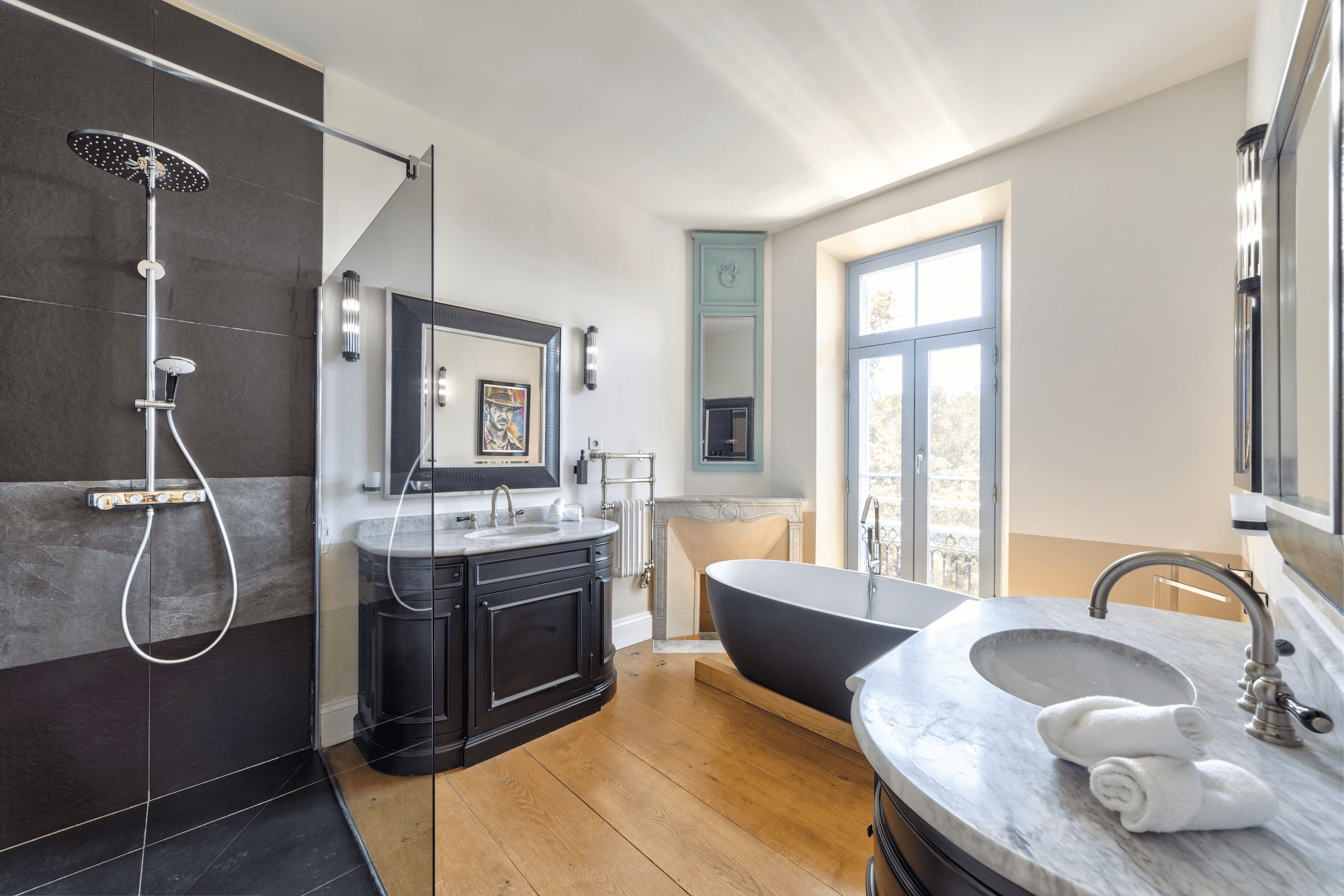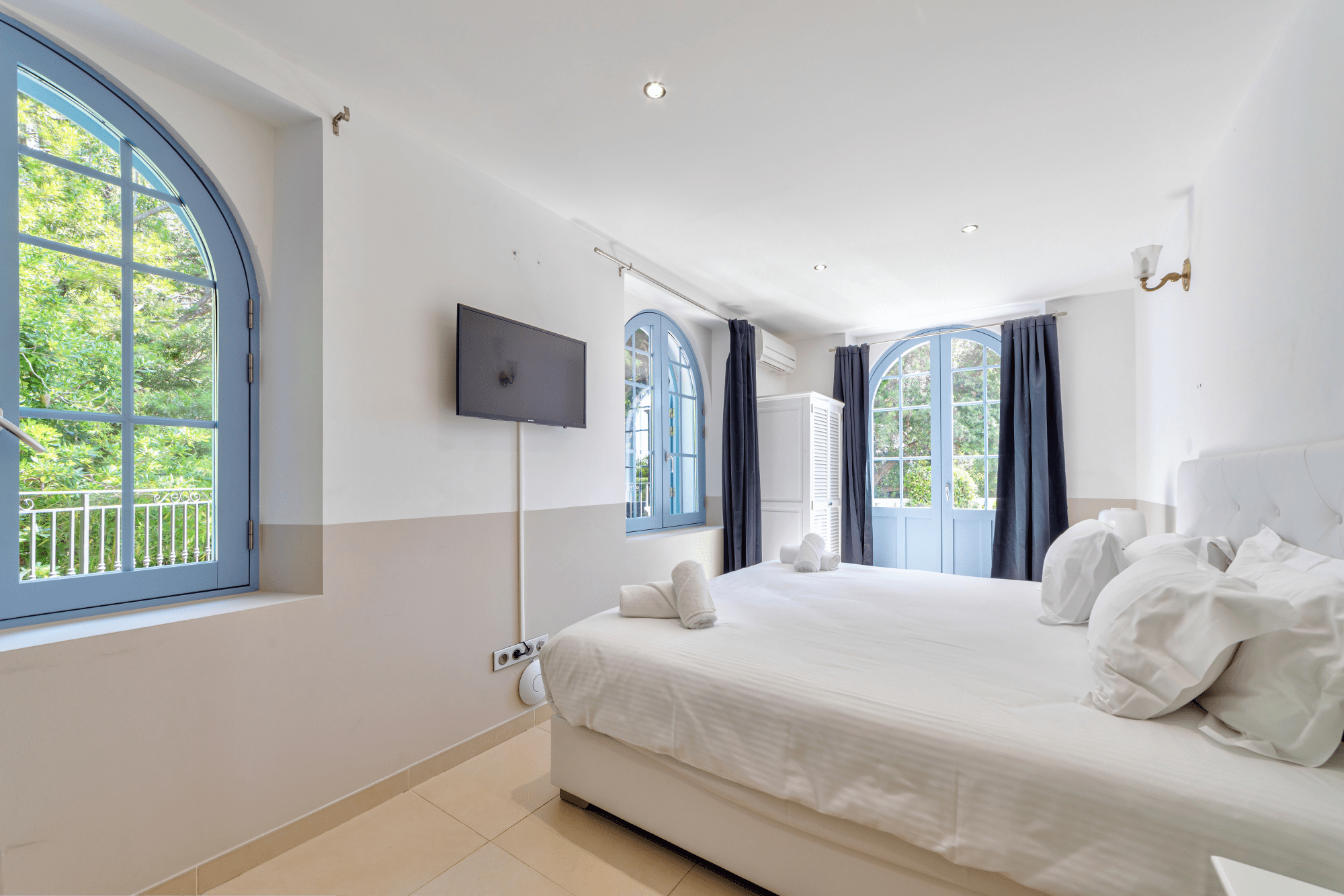 The outdoor spaces at Château des Cèdres are nothing short of spectacular. The lush gardens provide a serene backdrop for leisurely afternoons, while the inviting swimming pool is ideal for refreshing dips on warm sunny days. Multiple terraces and balconies offer ample space for sunbathing or enjoying a glass of wine while taking in the magnificent coastal views. With an outdoor dining area, guests can indulge in delightful meals surrounded by the beauty of the Côte d’Azur.