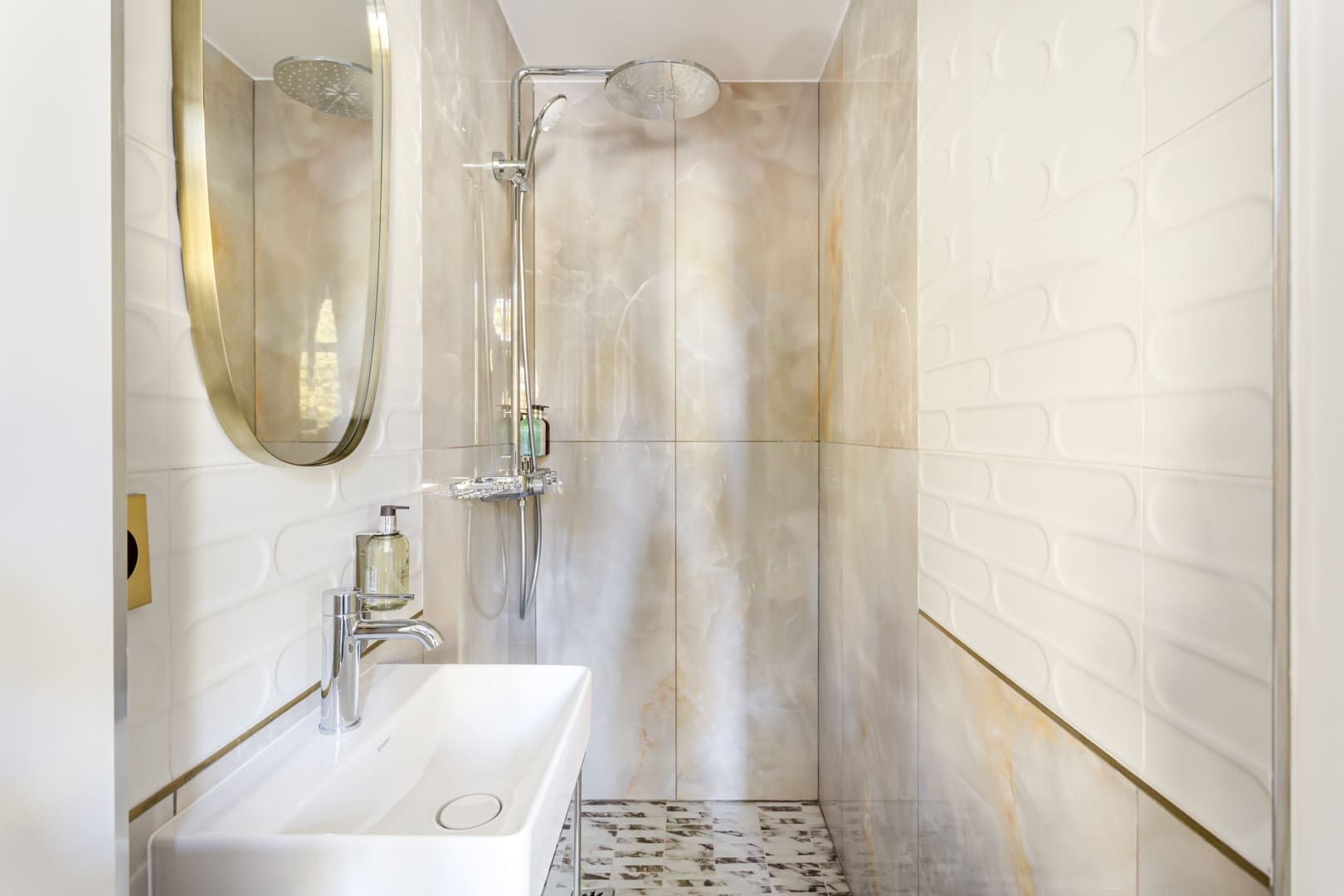 The apartment accommodates up to 12 guests comfortably, with two guests sleeping on a sofa bed in the living area. It features five bedrooms and three bathrooms. Note that the en-suites do not have toilets; there are two separate shared toilets. For more properties, browse our luxury villa rentals in France.