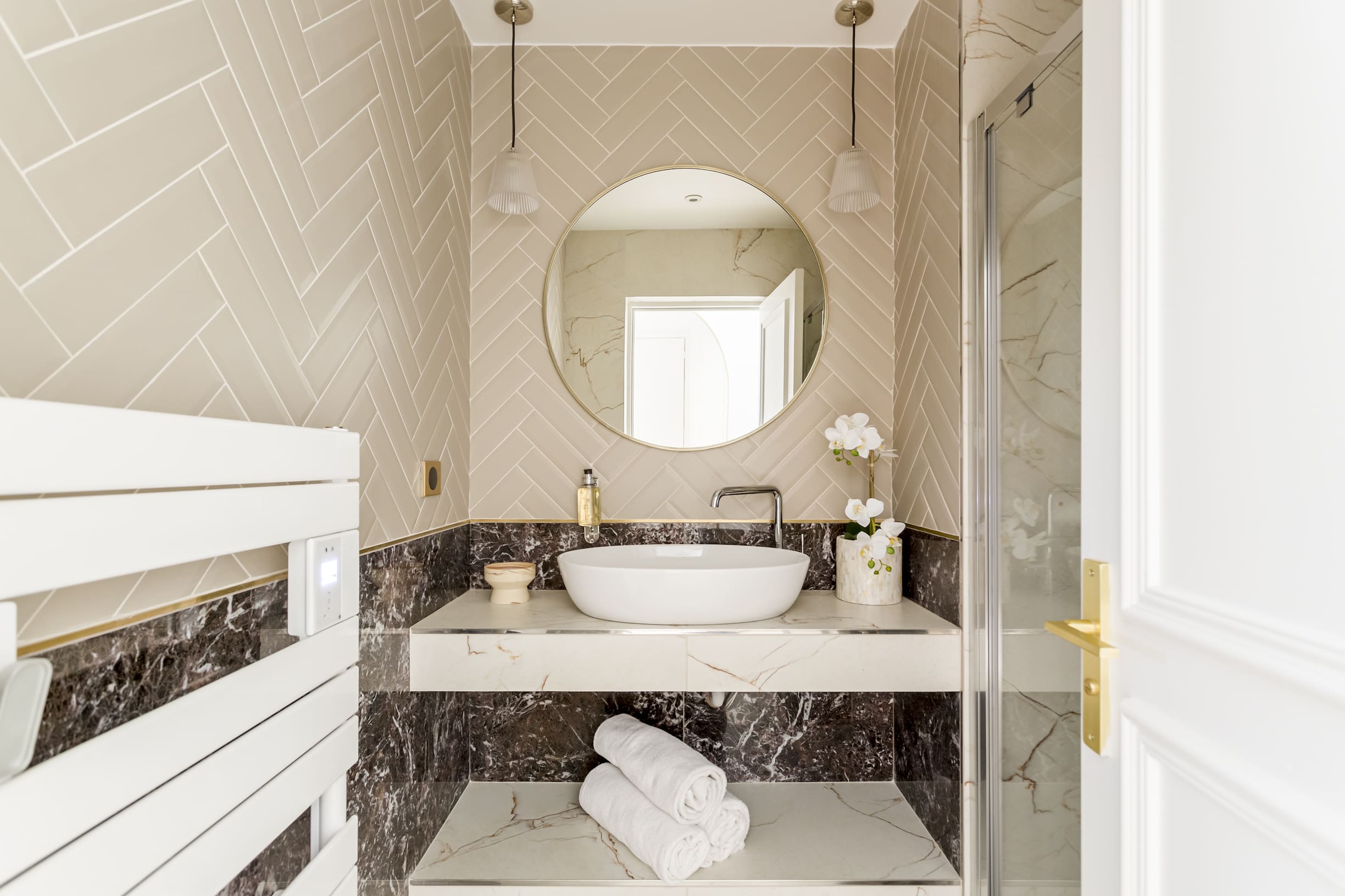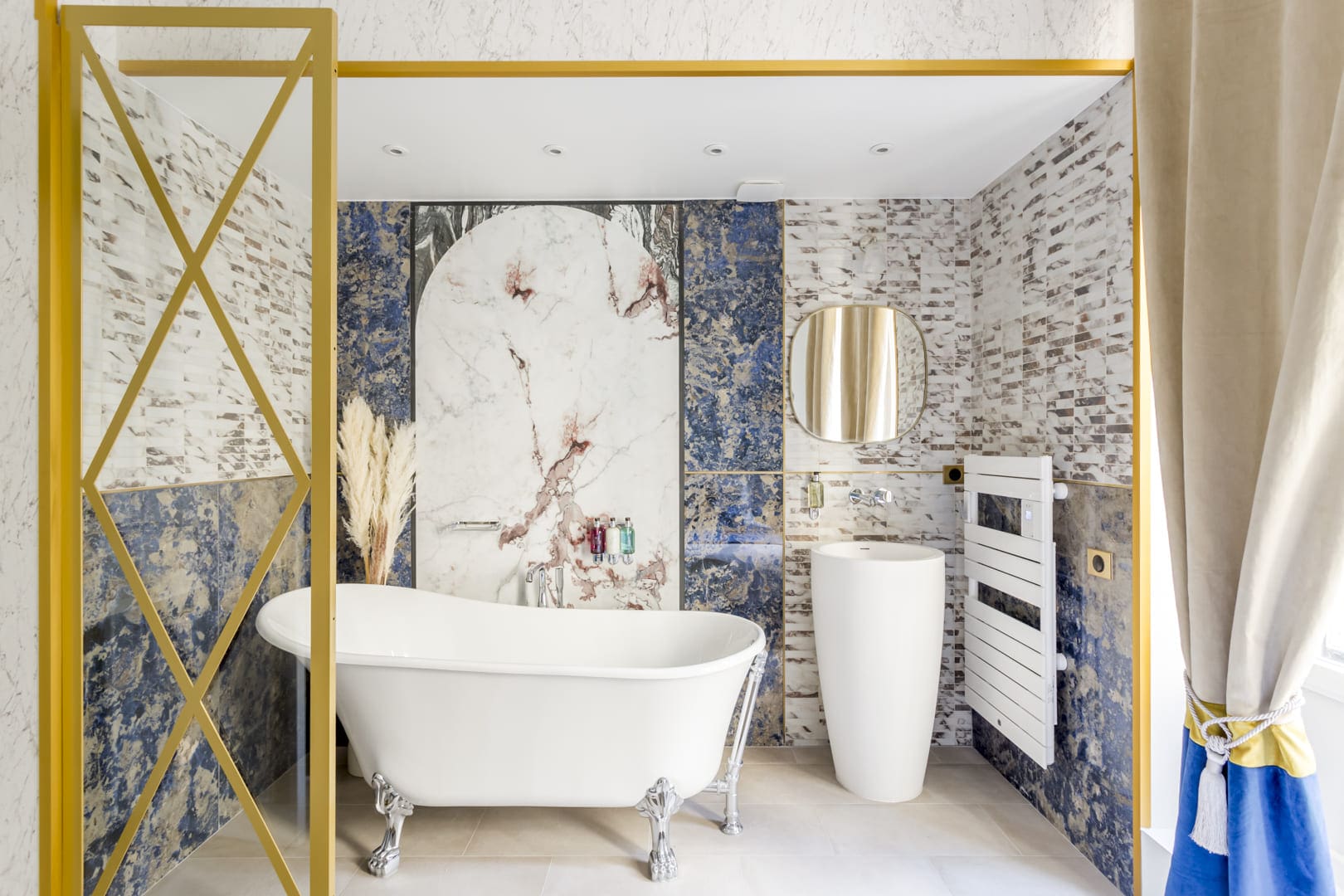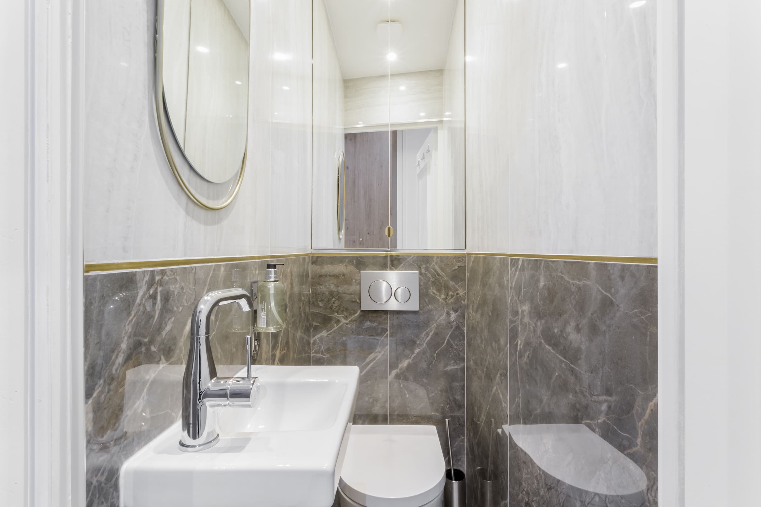 Step inside this spacious apartment and be greeted by a grand open-plan living area, ideal for entertaining. The interior is a masterpiece of classic Parisian design, featuring high ceilings, intricate moldings, and a tasteful blend of antique and contemporary furnishings. The well-equipped kitchen is perfect for preparing gourmet meals, while the living area offers comfortable seating for relaxation. The five bedrooms are elegantly appointed, providing tranquility and comfort for up to 12 guests. Notably, the main bedroom includes a luxurious freestanding bathtub, adding a touch of opulence to your stay.