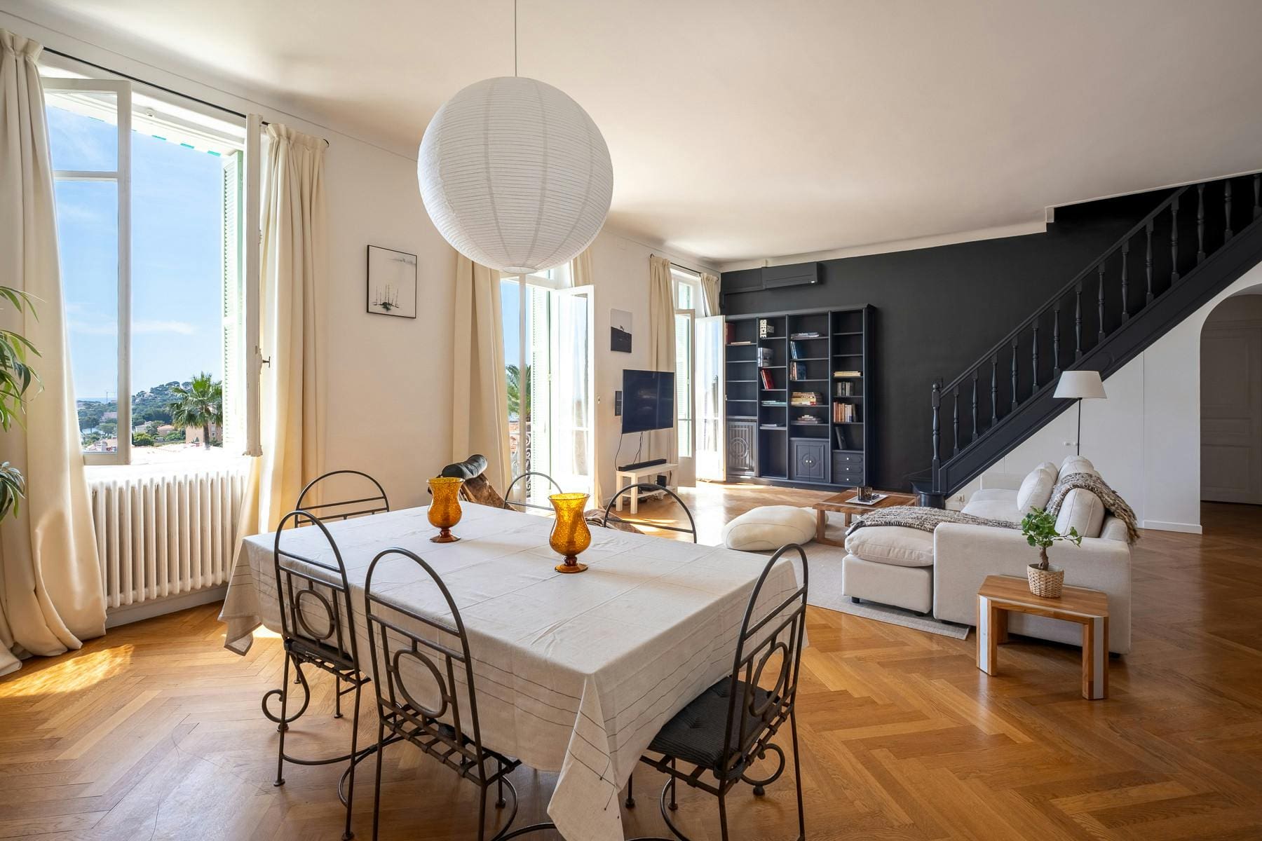 Step into an elegant interior that perfectly blends contemporary comfort with classic French style. With two spacious bedrooms and two modern bathrooms, the apartment can comfortably host up to five guests. The open-plan living area invites relaxation, while the fully equipped kitchen is perfect for family meals. Air conditioning throughout ensures a pleasant atmosphere, even on the warmest Côte d’Azur days.