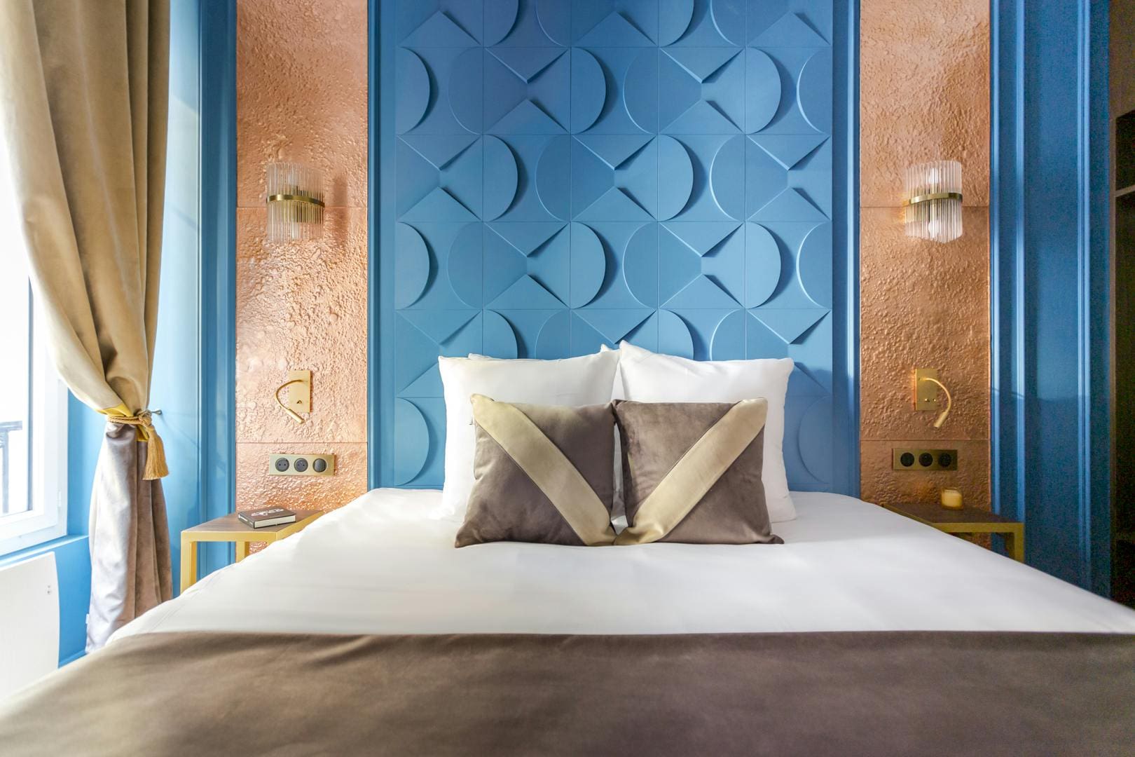 Step inside this Parisian gem and be greeted by a harmonious blend of classic charm and modern sophistication. The interior spaces are adorned with jewel tones and champagne pastels, complemented by sparkling chandeliers and elegant panelling. The living area features a plush sofa bed, accommodating up to ten guests comfortably. The smart kitchen is well equipped for culinary adventures, and the bedrooms are sanctuaries of comfort. A standout feature is the luxurious roll-top bathtub open to one of the bedrooms, offering a unique, albeit less private, bathing experience.