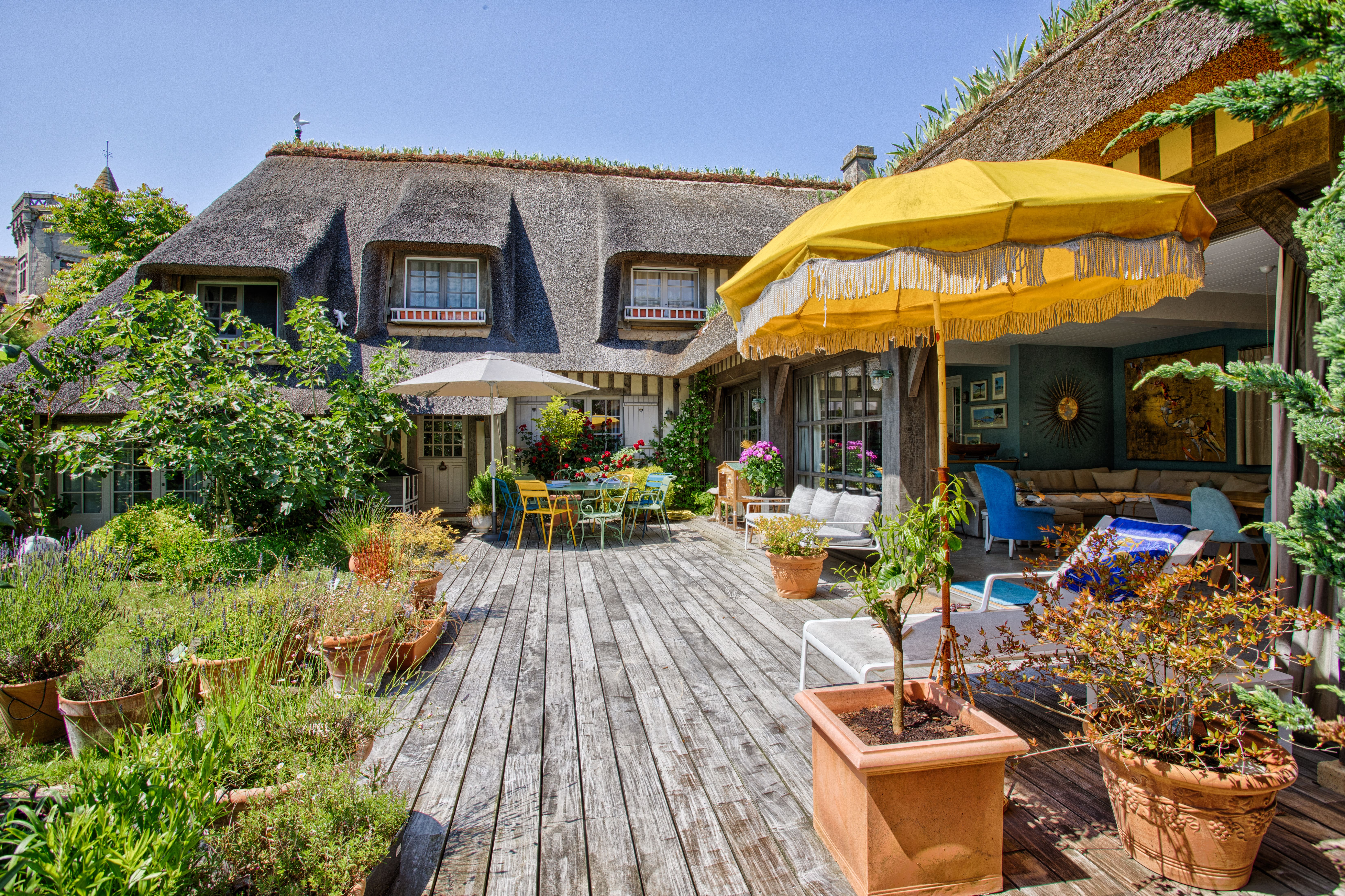Surrounded by lush gardens, the villa offers numerous outdoor spaces to unwind and enjoy the natural beauty of Calvados. Just a short walk from Deauville Beach, guests can indulge in sunbathing or beachside strolls. The outdoor dining area is perfect for alfresco meals, set against the backdrop of Normandy’s picturesque landscape.