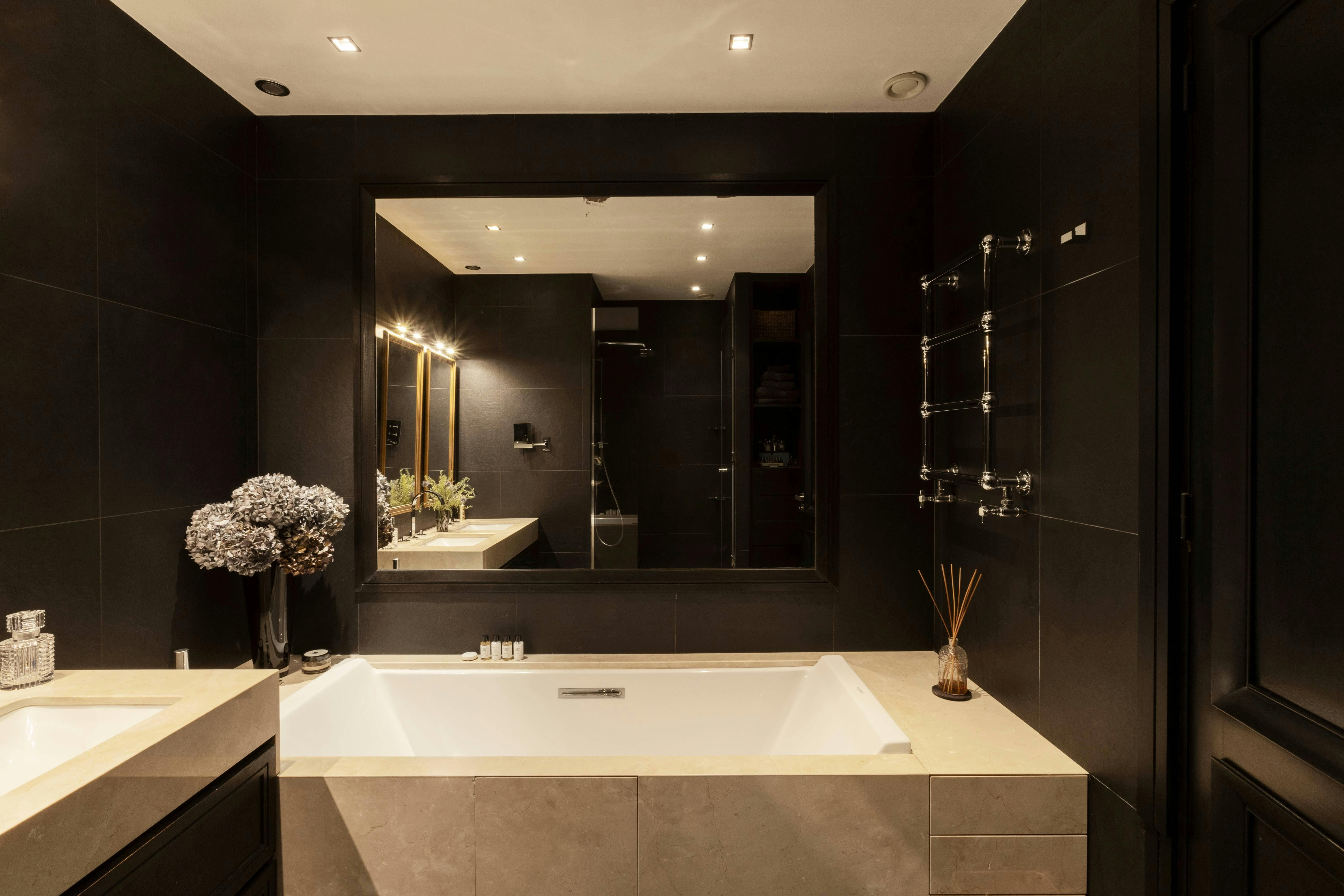 A: Yes, the apartment features a freestanding tub in one of the en-suites, adding a touch of luxury.