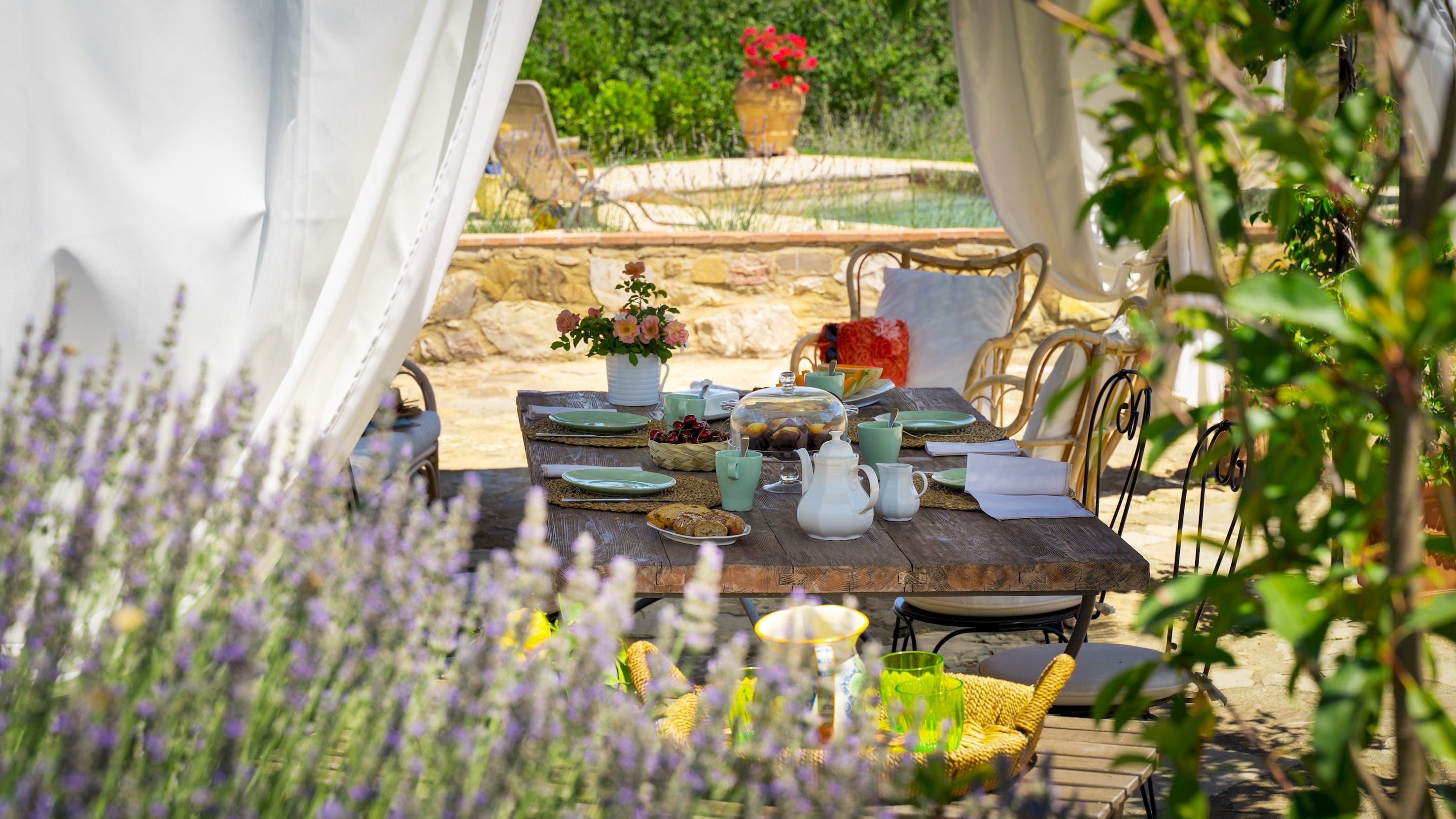 Step outside to immerse yourself in the stunning Tuscan landscape. The terraced gardens provide both upper and lower levels for exploration, connected by external stairs. A seasonal swimming pool, open from April to October, invites you for refreshing dips under the sun. Enjoy the fragrant air filled with the scent of citrus and olive trees, and indulge in al fresco dining under the pergola, complete with a barbecue for memorable meals.