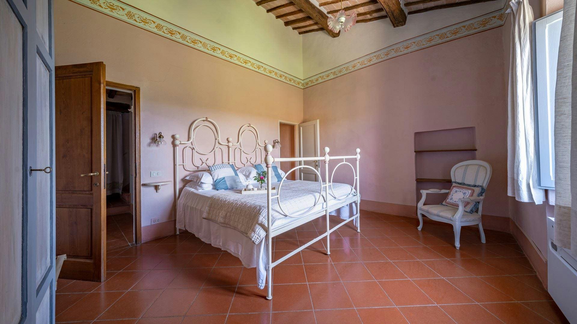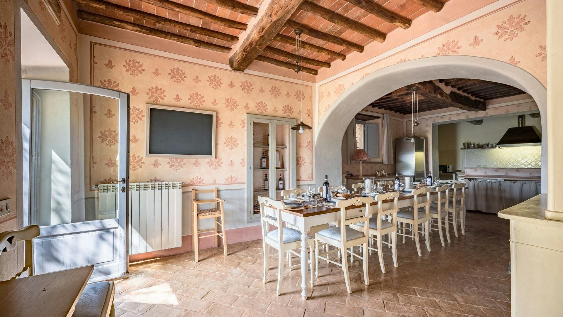 Step inside to discover a beautifully designed interior that effortlessly combines traditional Tuscan architecture with contemporary comforts. The main house features spacious living areas adorned with elegant furnishings and classic decor, creating an inviting atmosphere for relaxation. With seven well-appointed bedrooms and eight luxurious bathrooms, this villa ensures ample space and privacy for up to 14 guests. The fully-equipped kitchen is perfect for culinary enthusiasts, while the dining room provides a sophisticated setting for memorable meals.