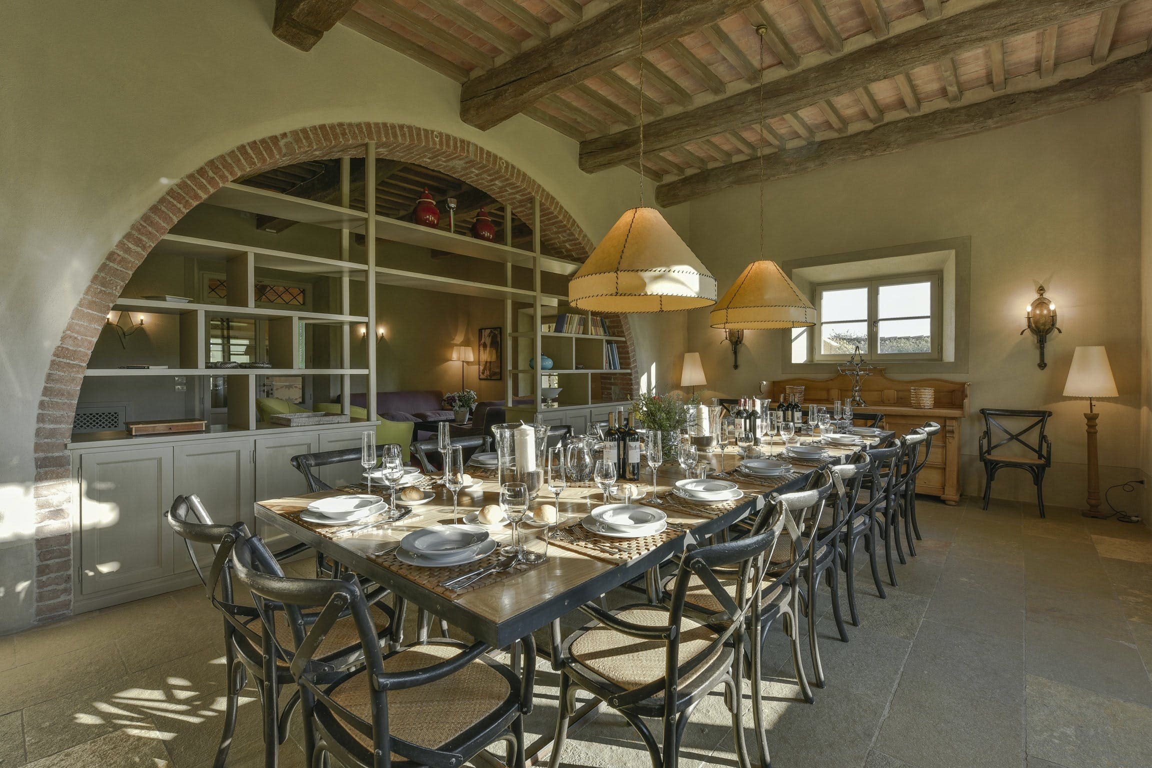 Step inside this exquisite Tuscan apartment where each room is a testament to refined luxury. With nine beautifully appointed bedrooms, each with en-suite bathrooms, the property comfortably accommodates up to 18 guests. The main living areas boast classic Tuscan farmhouse charm with plush lounges, a state-of-the-art kitchen, and several intimate gathering spaces. Unique features like an ancient hearth turned into a cozy reading nook add to the property’s distinctive character.