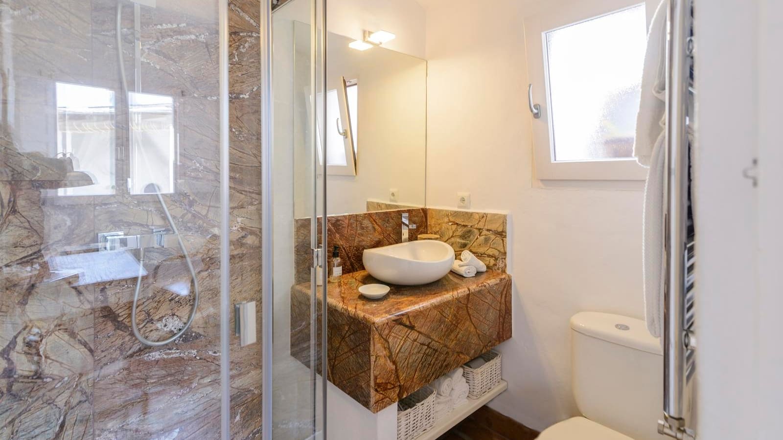 The apartment accommodates up to six guests, with three bedrooms and three bathrooms. Access is via a 3km unpaved lane, requiring a car for convenience. Parking is available on-site. Note that the apartment is on the first floor without lift access, which may not be suitable for those with limited mobility. Browse our luxury villa rentals in Spain for more properties.