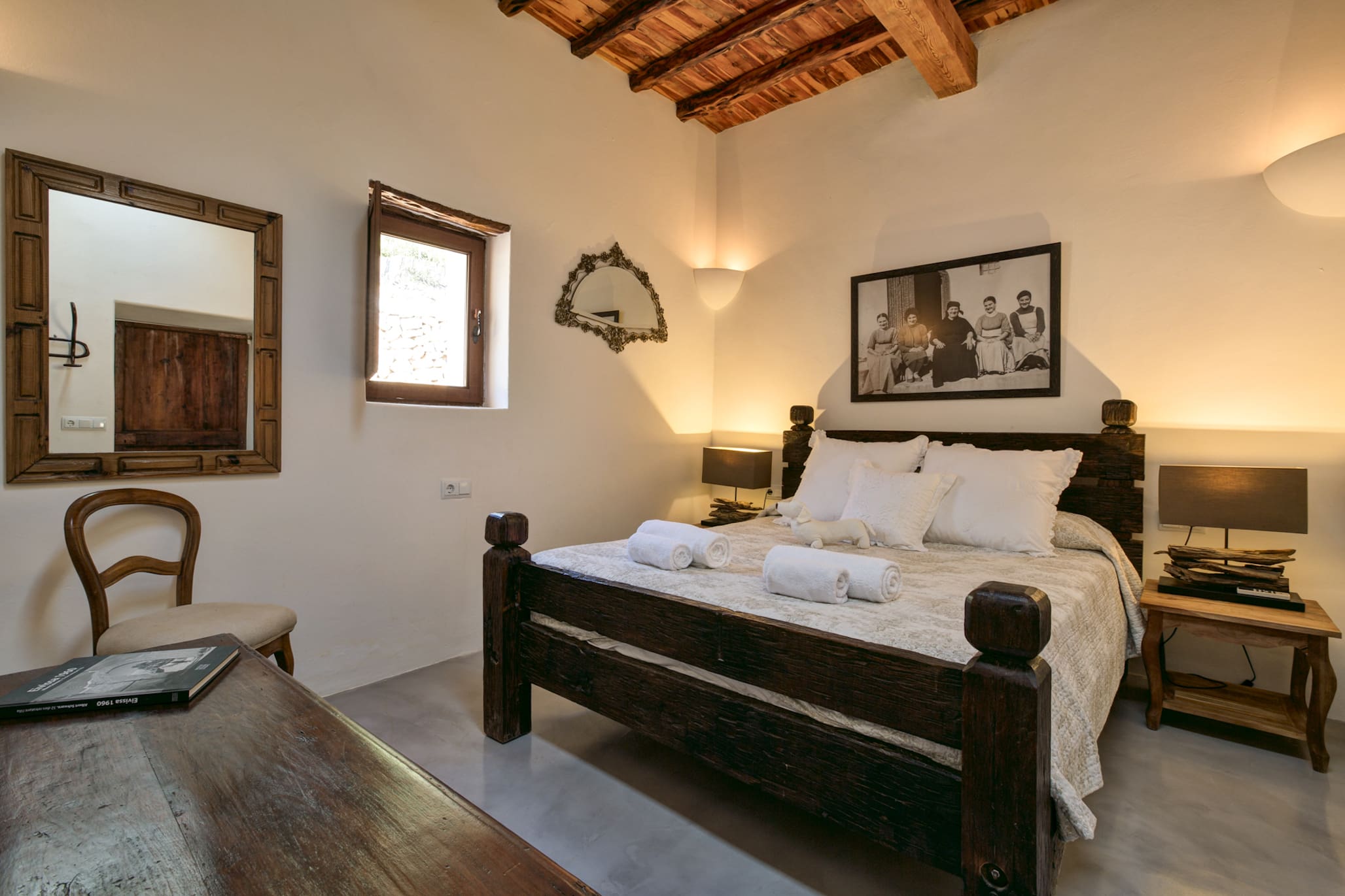 Step inside and be captivated by the villa’s authentic Spanish aesthetics. This spacious six-bedroom villa accommodates up to 12 guests, with five elegant bathrooms. The interiors boast rustic wooden ceilings and exquisite artwork, creating a warm and inviting atmosphere. Each bedroom offers a unique experience with archways in place of doors for some en-suites, adding a touch of tradition. The villa’s kitchen is equipped for gourmet cooking, while the living areas provide ample space for relaxation and entertainment.
