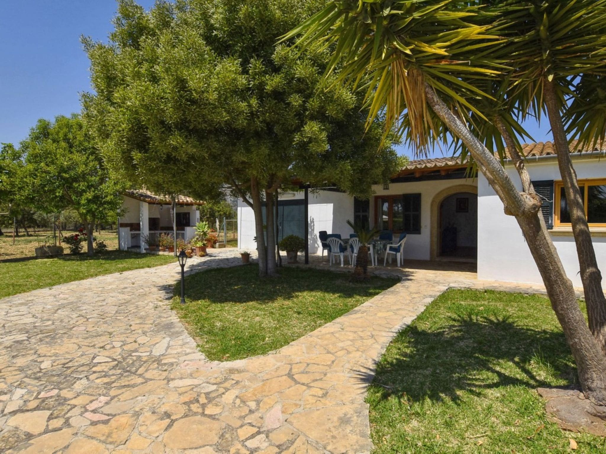 Built in 2000, this well-maintained property combines traditional Mallorcan architecture with modern amenities. Essential conveniences include WiFi internet access, washing machine, iron, and hair dryer. The villa includes private parking on the premises, essential for exploring the wider island. While a car is recommended for maximum flexibility, public transport connections are available 3 kilometres away.