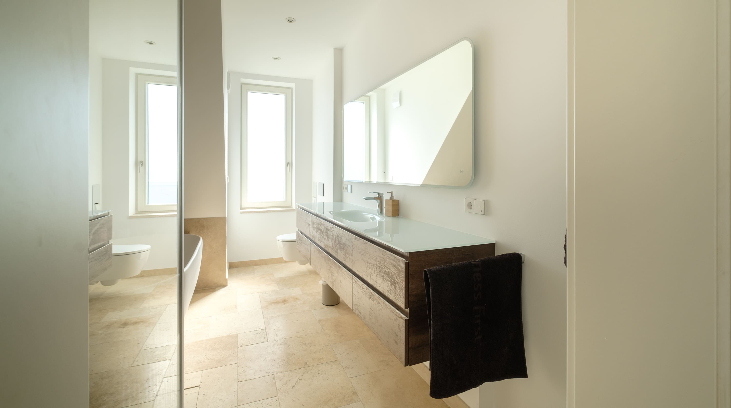 Accommodating up to four guests, the apartment includes two bedrooms and two bathrooms. Entrance is shared with other residents of the building. Fitness enthusiasts will appreciate the free weights available for use during their stay. For more options, browse our luxury villa rentals in Germany.