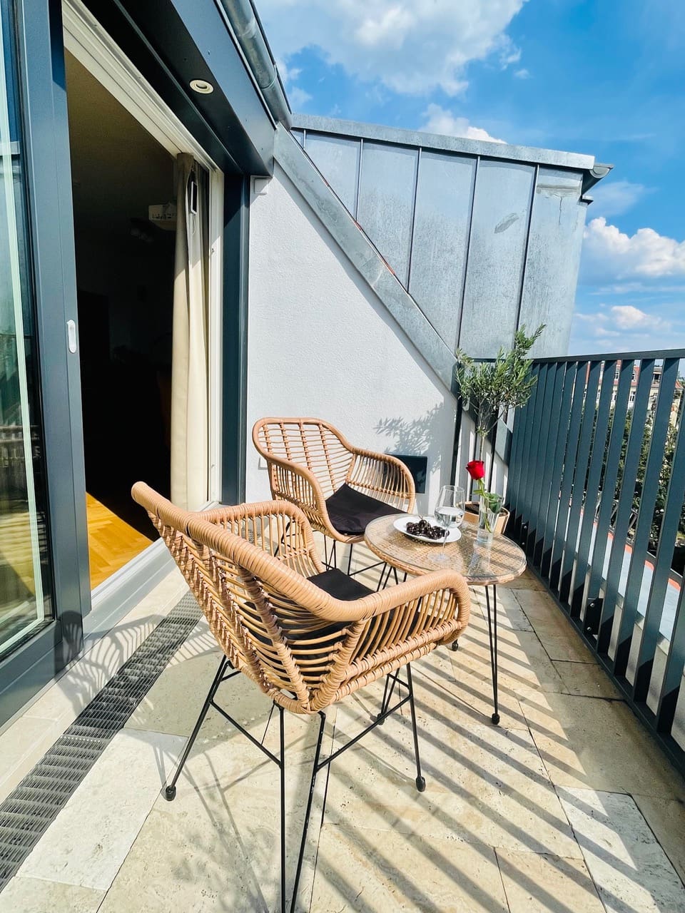 Enjoy the luxury of four terraces and balconies, providing perfect spots for morning coffee or evening relaxation. The rooftop terrace is an exceptional feature, offering panoramic views of Berlin’s skyline. Whether you choose to dine al fresco or simply soak in the urban scenery, these outdoor spaces enhance your stay with a touch of tranquility amidst the city buzz.
