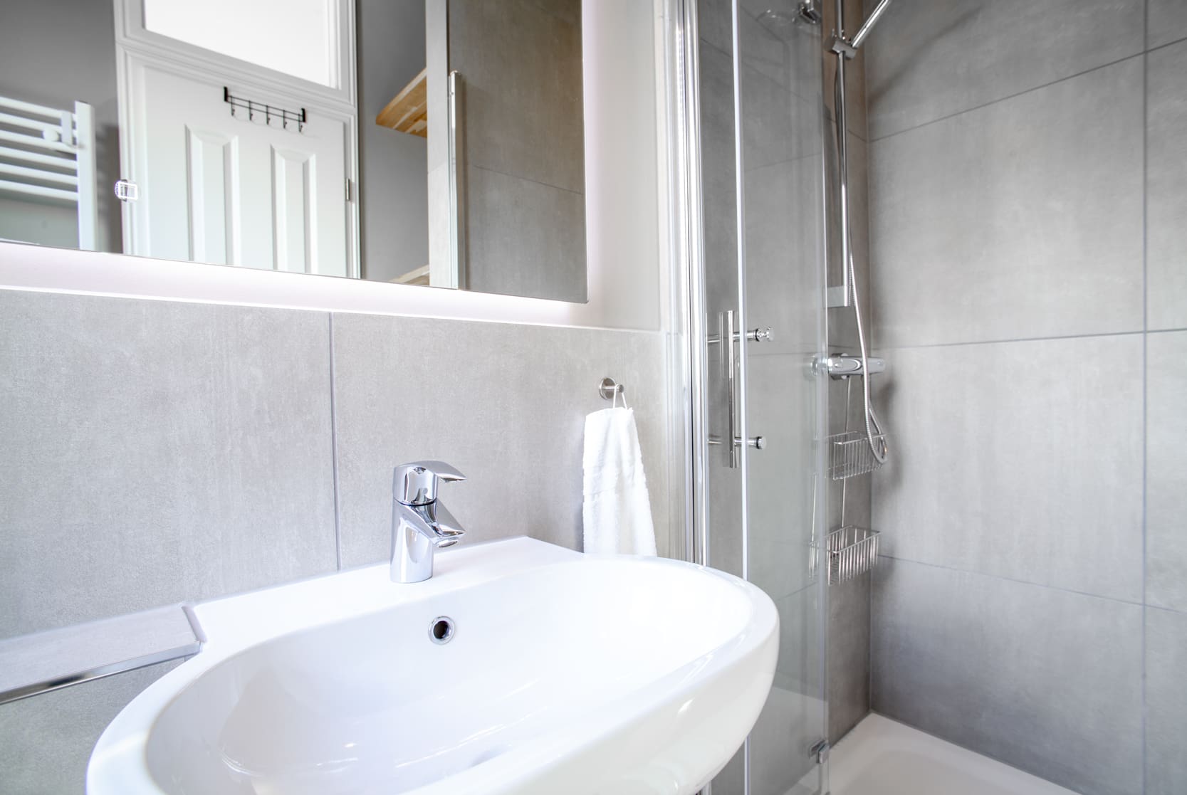 A: A supermarket is conveniently located just a five-minute walk away.