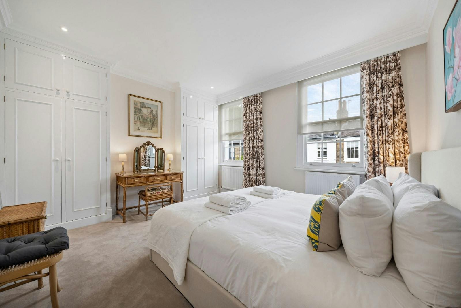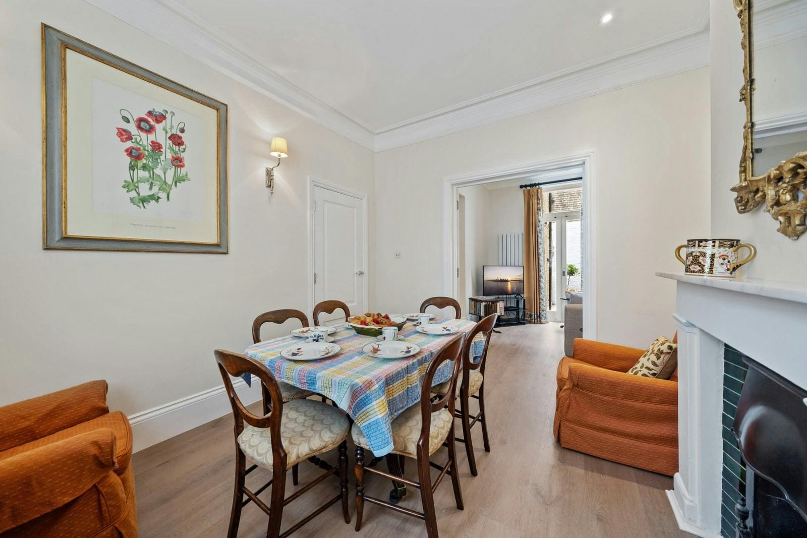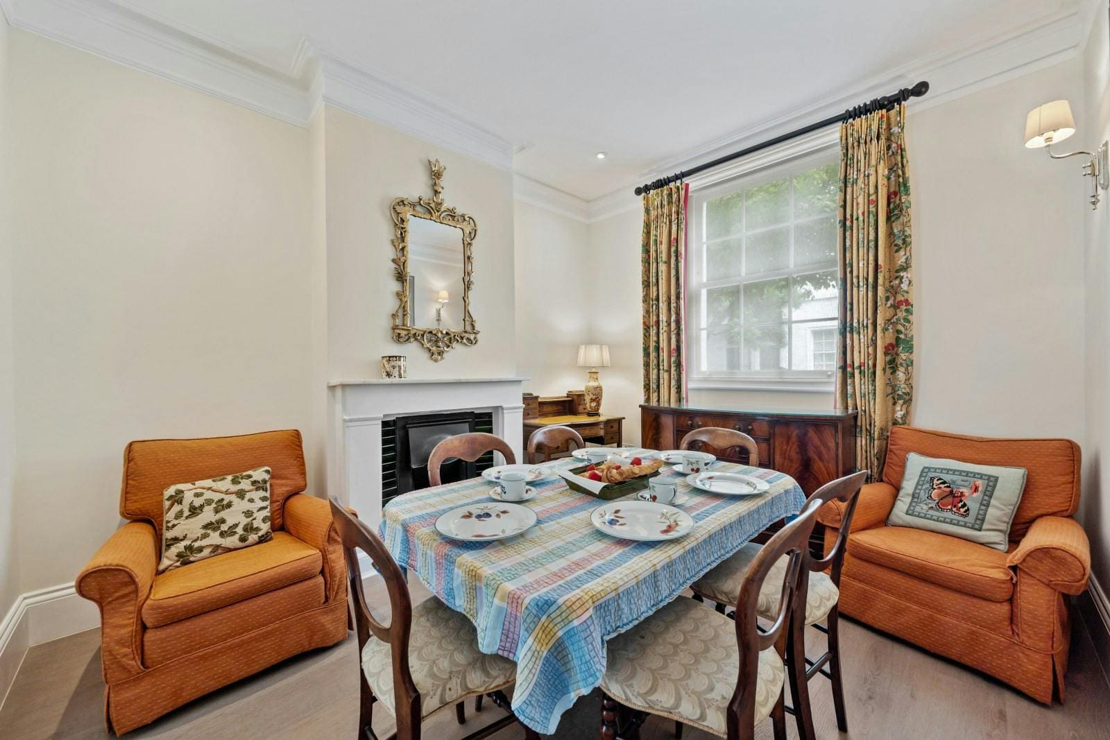 Despite its central location, this luxury townhouse rental in Chelsea offers a delightful outdoor terrace. Here, guests can enjoy alfresco dining or simply unwind with a book in hand. This private outdoor space is a rare find in the heart of London, providing a serene escape from the vibrant city life.