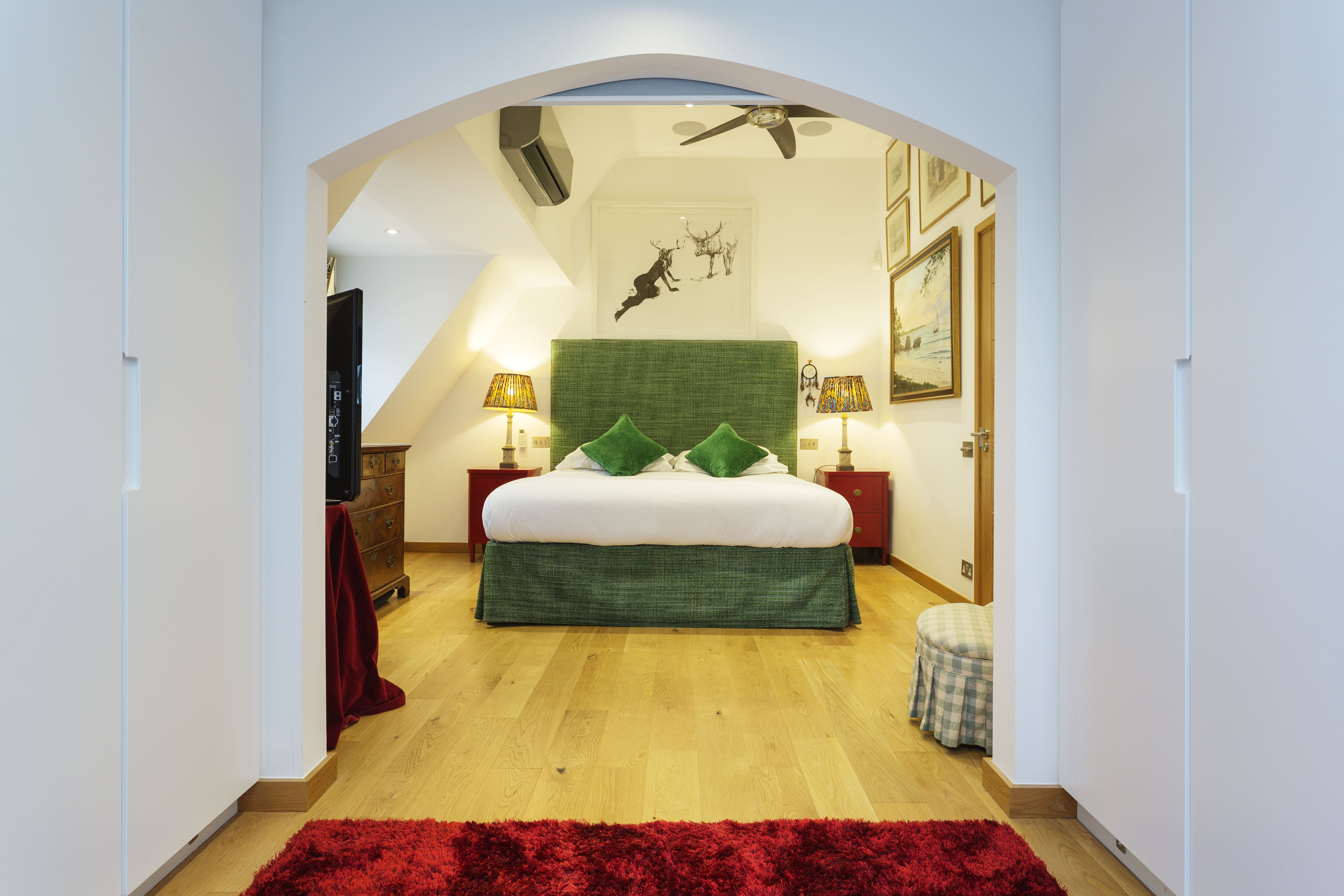 The apartment accommodates up to six guests with three bedrooms and two bathrooms. Please note, there are stairs to climb within the property. A convenience store is less than a five-minute walk away, and there’s a Waitrose store fifteen minutes on foot. For those arriving by plane, London Heathrow is the nearest airport, a thirty-two-minute drive from the apartment. Browse our luxury villa rentals in United Kingdom for more properties.