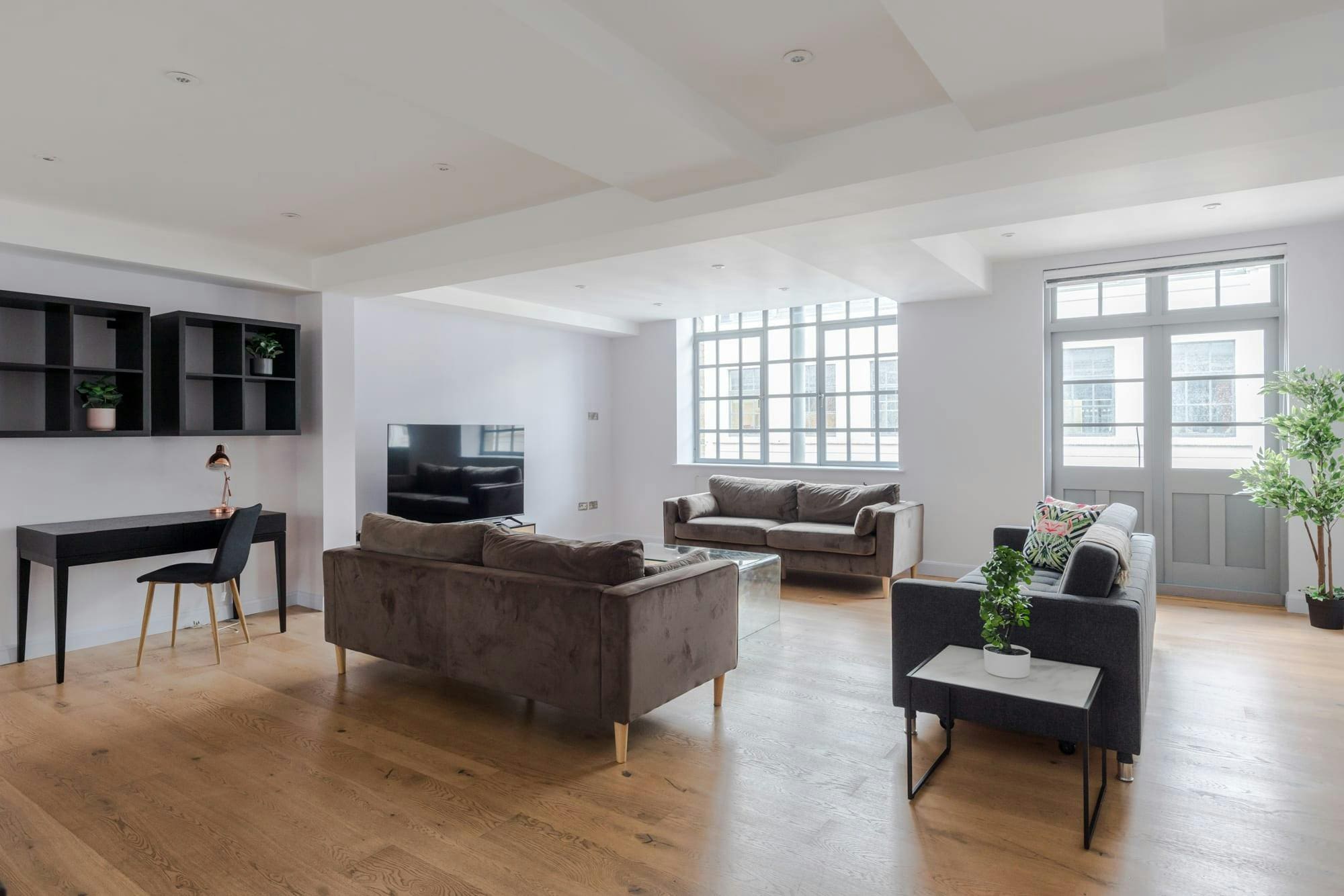 This Clerkenwell Apartment is ideal for families seeking a spacious London retreat, groups of friends exploring the city’s vibrant culture, and business travelers needing a central location with all the comforts of home.