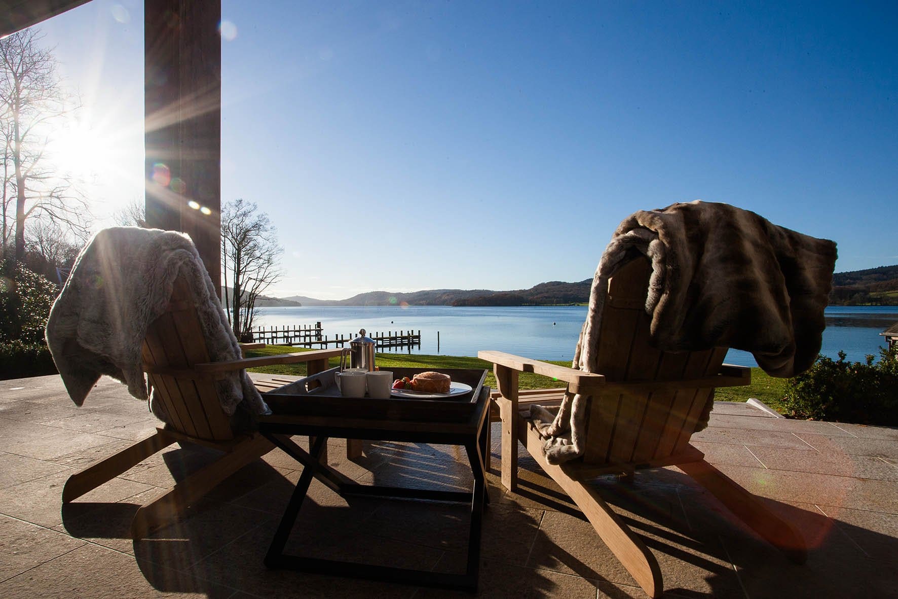 Step inside and discover a world of elegance and comfort. The interior of this luxury house rental in the Lake District is designed to impress, featuring designer furniture and a warm, inviting atmosphere reminiscent of a ski chalet. The main lounge is perfect for relaxation, complete with a wood burner for cozy evenings. An additional snug provides a quiet retreat. With five bedrooms, three featuring balconies and two adaptable as twins, the house offers flexibility and comfort. Each bedroom boasts floor-to-ceiling windows, allowing guests to soak in the breathtaking views. The modern kitchen, breakfast area overlooking the lake, and formal dining area cater to all dining preferences.