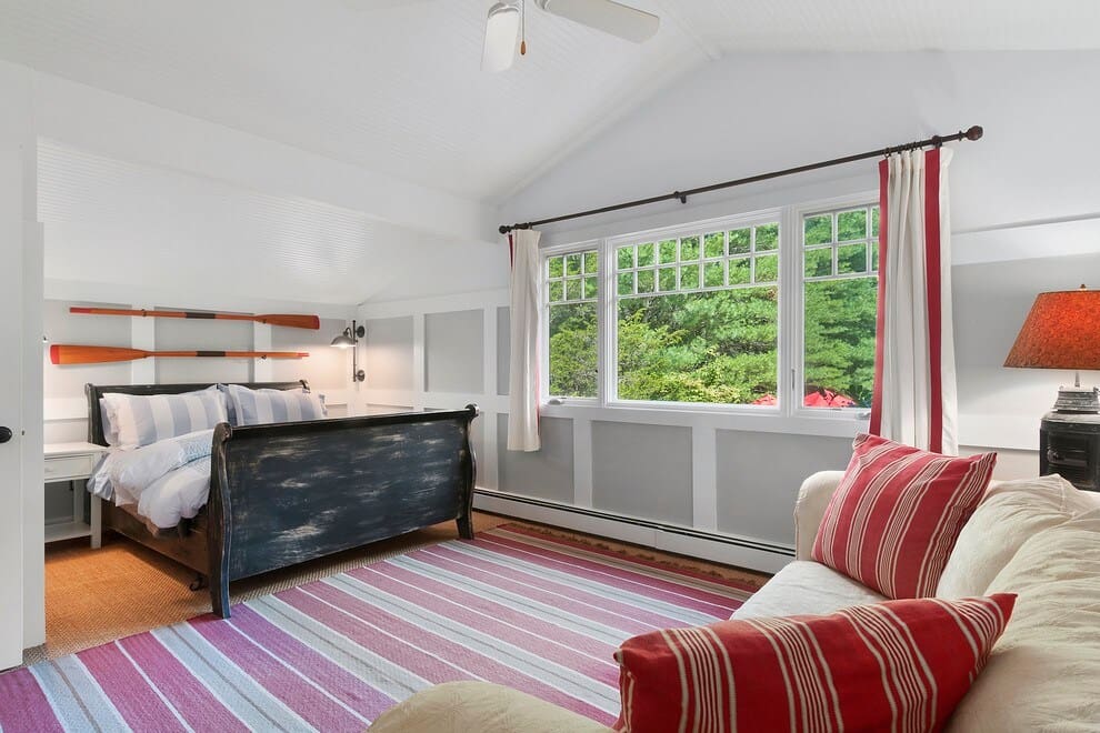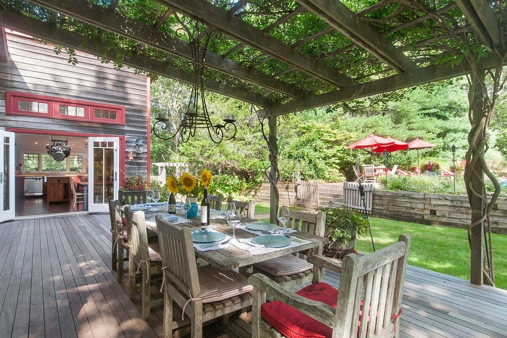 The interiors of this luxury house rental in East Hampton are designed with elegance and functionality in mind. The spacious living area welcomes you with plush seating and large windows that let in abundant natural light. The modern kitchen is fully equipped, perfect for preparing gourmet meals. Each of the three bedrooms boasts comfortable bedding and tasteful decor, ensuring a restful night’s sleep. With two well-appointed bathrooms, guests can enjoy privacy and convenience during their stay.