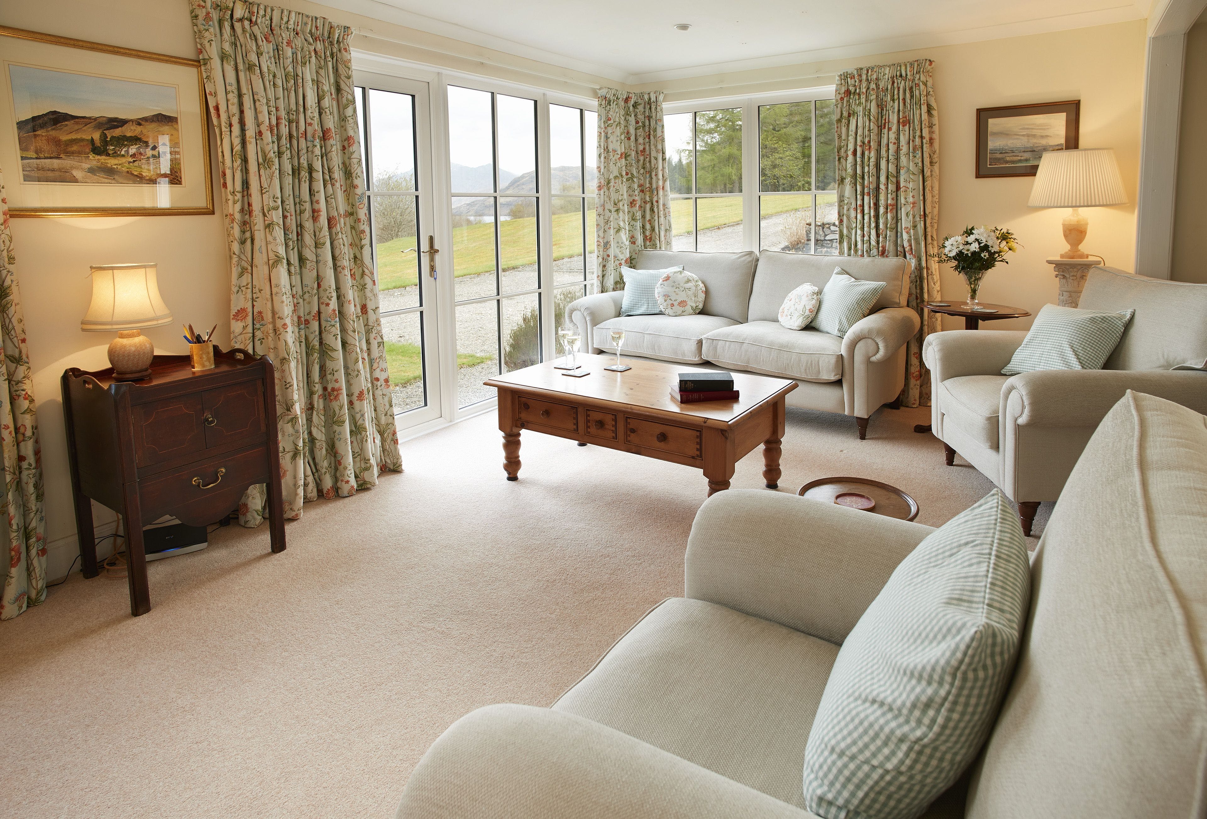 The outdoor area is just as inviting, featuring a BBQ setup perfect for family cookouts. The garden leads directly to a small pond and the loch, offering breathtaking views and a peaceful escape. Children can explore safely under supervision, and the outdoor dining area is perfect for enjoying meals with a view. The neighboring home has access rights to take boats down to the loch through the grounds, adding a touch of local charm to your stay.