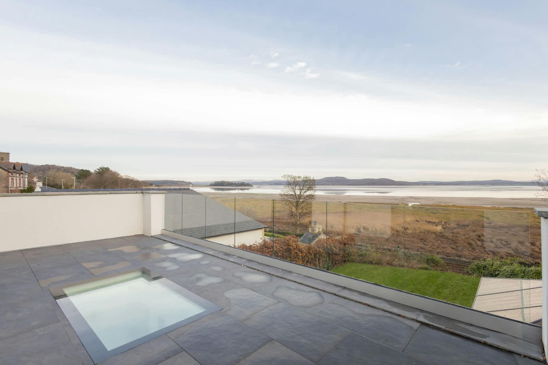 The outdoor areas of this luxury house rental in the Lake District are just as impressive as the interior. Relax in the hot tub while soaking in the panoramic seaviews, or enjoy al fresco dining on the spacious patio. The well-manicured gardens provide a tranquil setting for leisurely strolls, and the nearby lawn offers a perfect spot for outdoor games and activities.