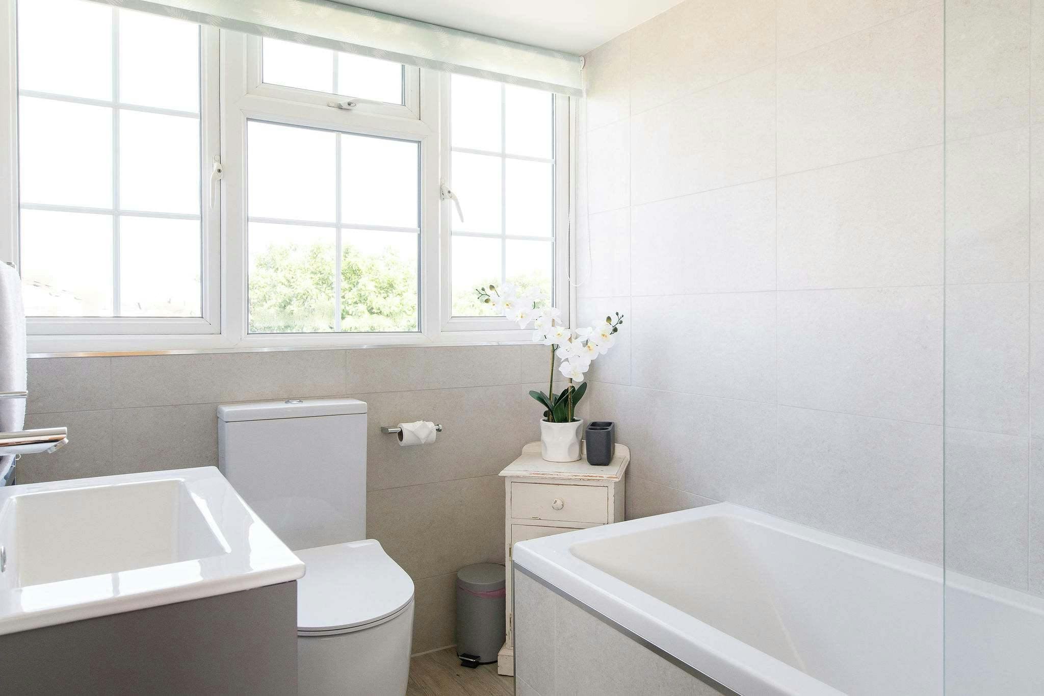 The house accommodates up to six adults and four children, with three bathrooms ensuring comfort for all guests. Parking is available for three to four cars, and well-behaved dogs are welcome, provided they remain downstairs and off the furniture. Note the presence of a smart noise monitoring device, ensuring peace and privacy during your stay. Explore our luxury villa rentals in United Kingdom for more properties.