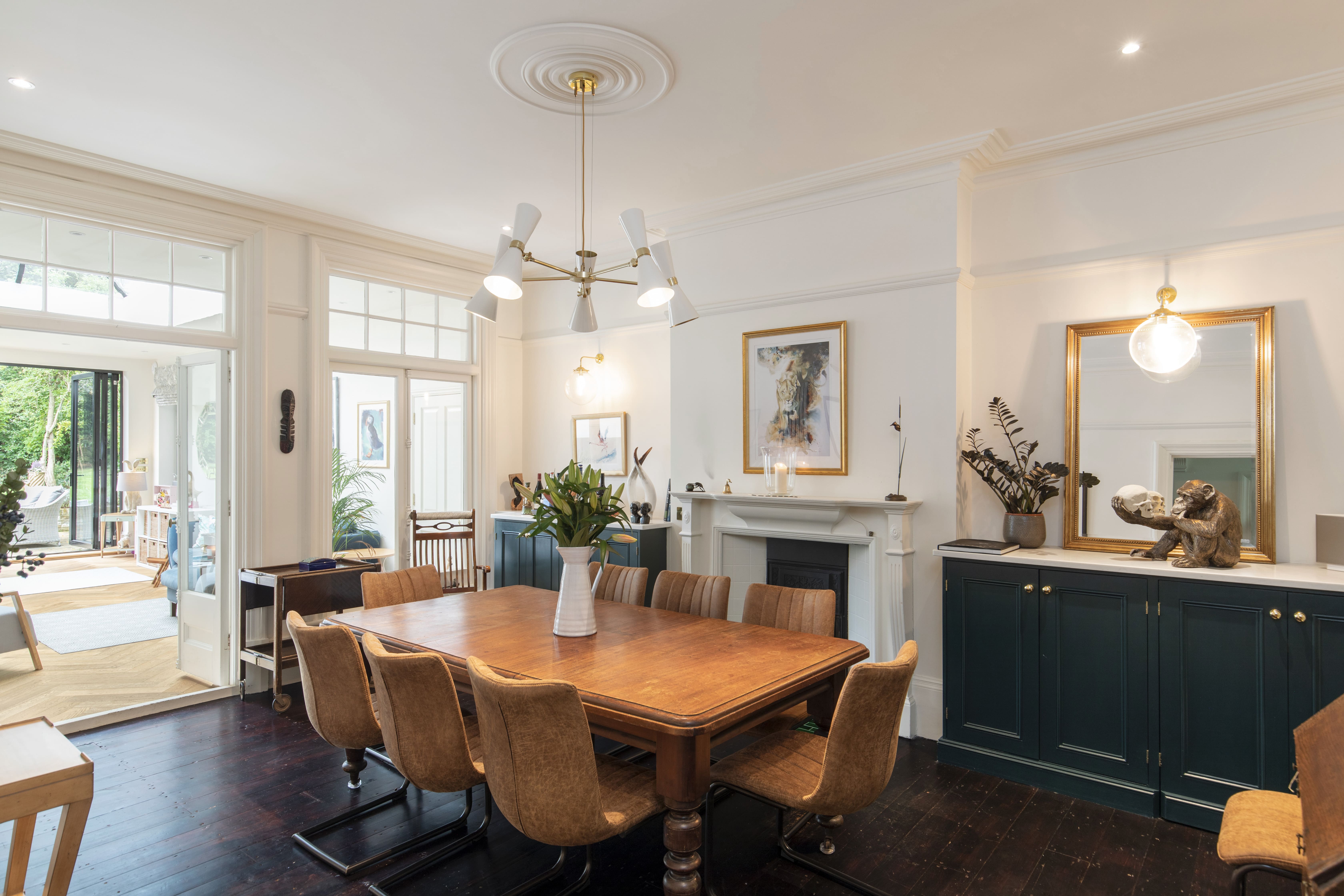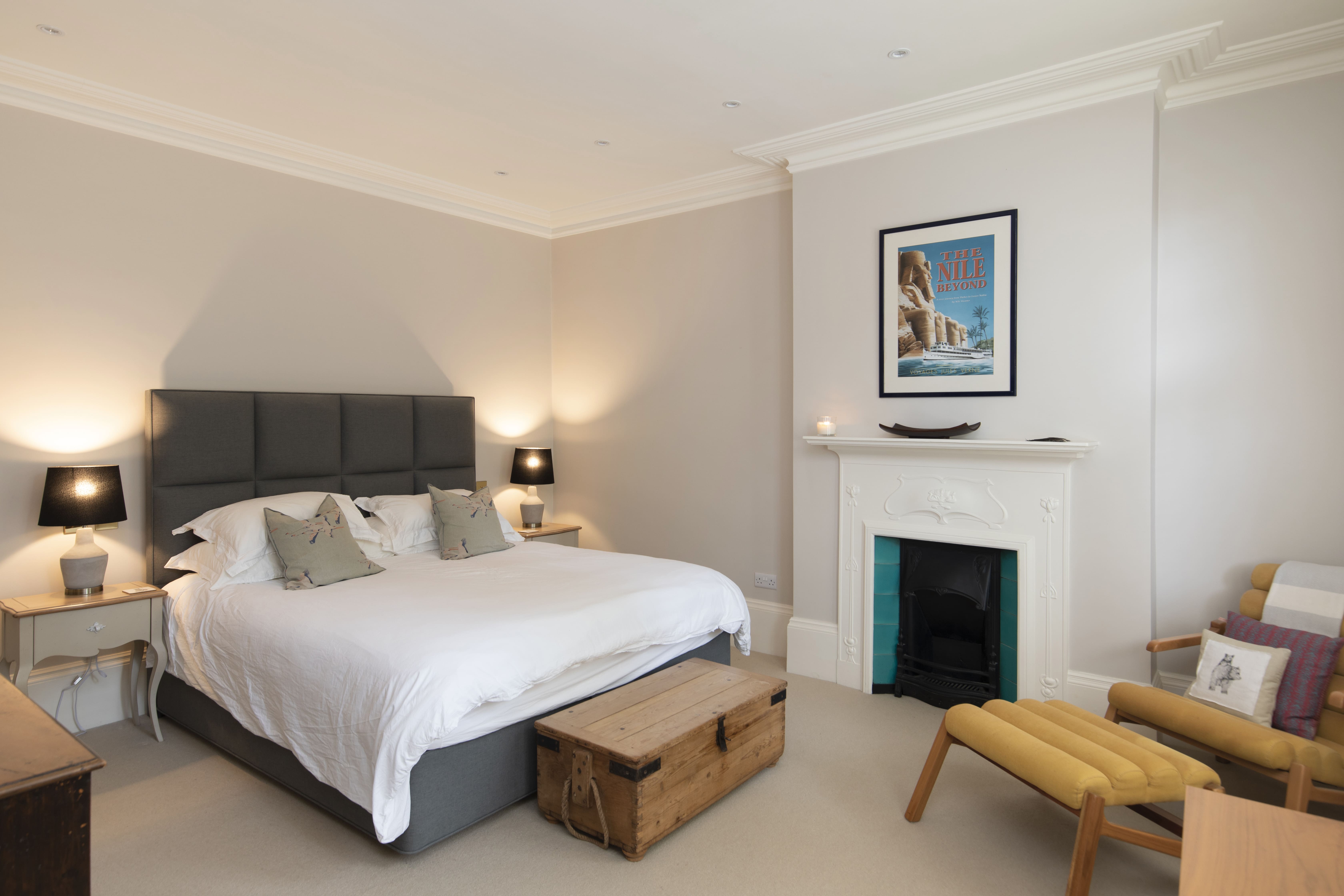 The interiors of this Lewisham apartment are a testament to refined taste and modern sophistication. A harmonious blend of classic Edwardian architecture and contemporary design elements, the apartment features five spacious bedrooms and four elegantly appointed bathrooms. The state-of-the-art kitchen, adorned with navy cabinetry, offers all the modern amenities including a coffee machine, bread maker, and blender for your culinary adventures. The living areas exude warmth and style, perfect for unwinding after a day exploring the city.