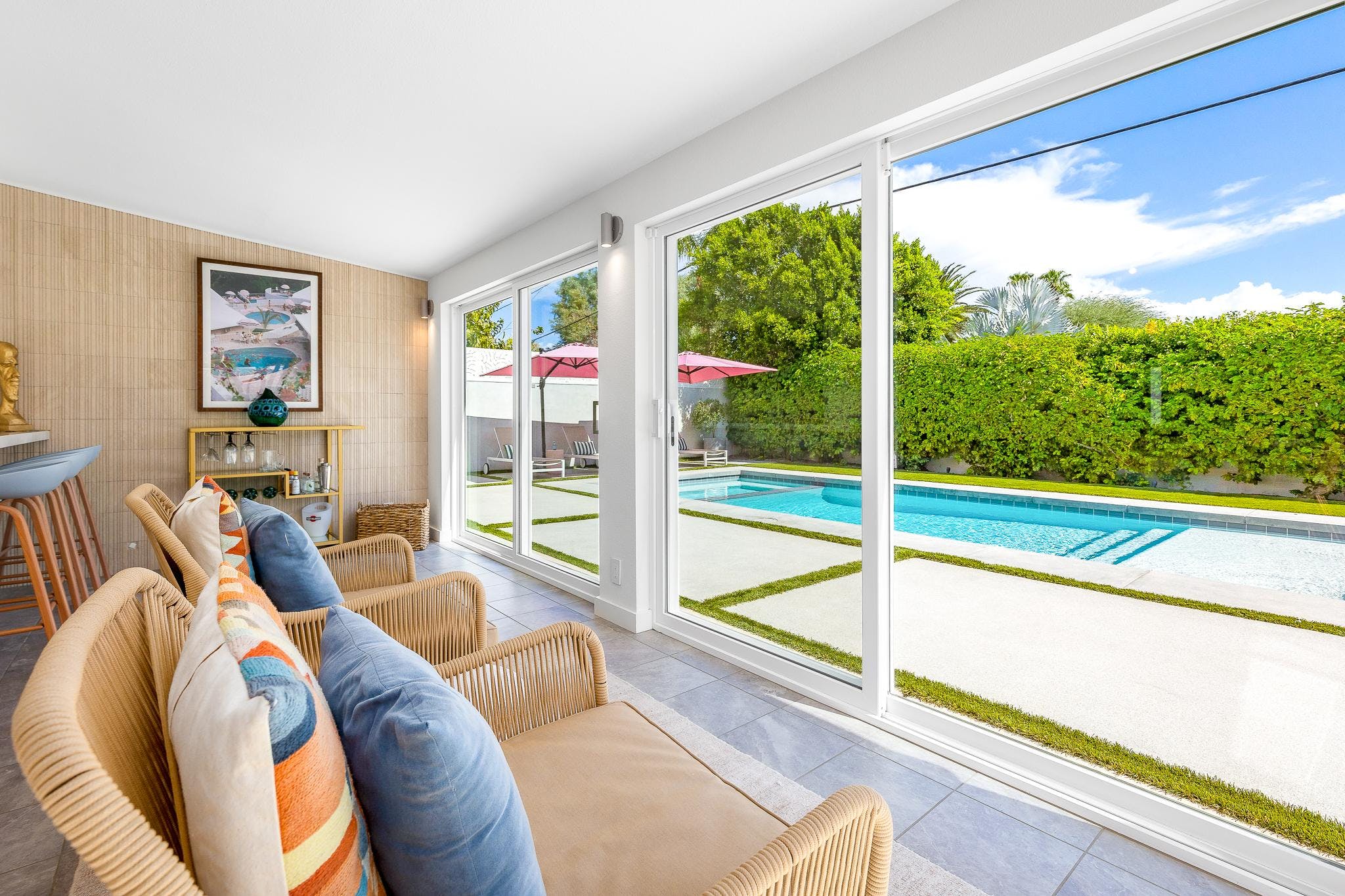 Discover the vibrant surroundings of Cathedral City, just a short drive from the bustling Palm Canyon Drive. Explore local boutiques, cafes, and cultural landmarks or take a leisurely stroll through the hip Movie Colony neighborhood. For those eager to explore further afield, Palm Springs offers an array of attractions, from the Aerial Tramway to the Living Desert Zoo and Gardens. Discover our full collection of luxury villa rentals in Cathedral City. For more on what to see and do, visit the Cathedral City tourism guide.