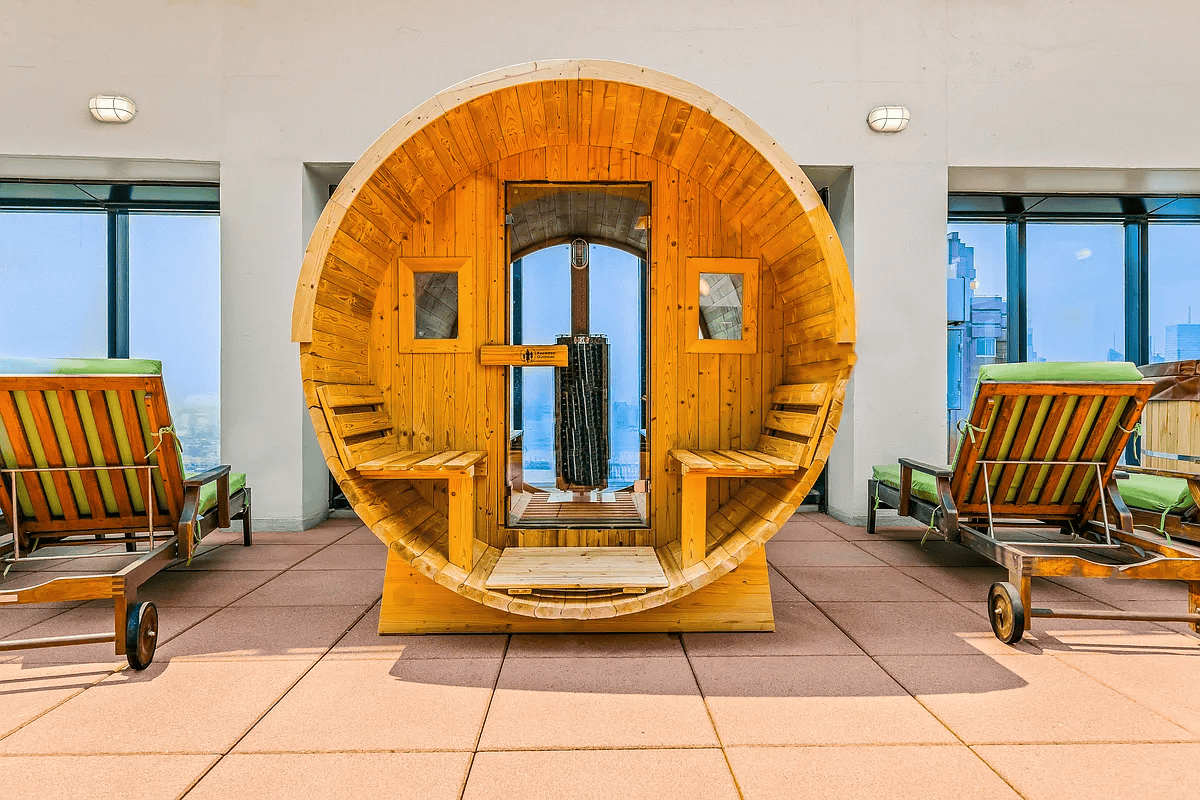 A: Guests have access to an indoor pool, sauna, fitness center, and resident lounge.