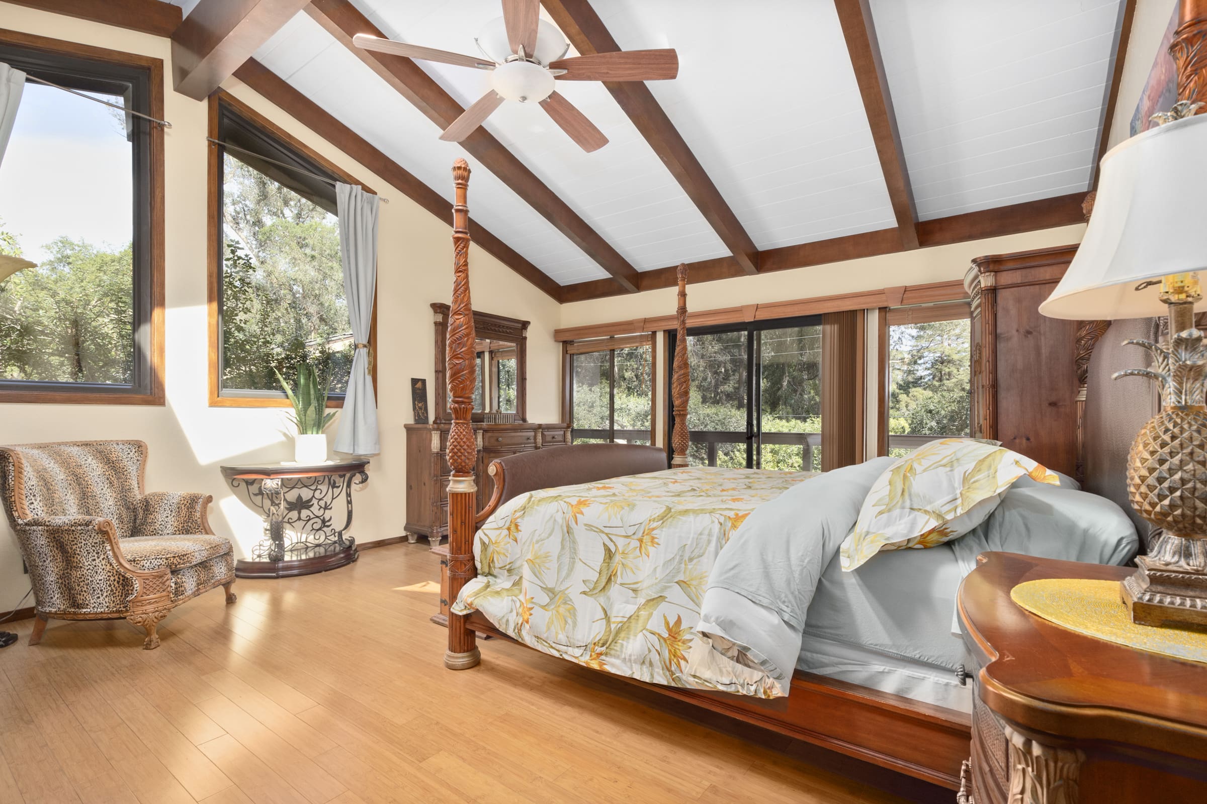 This property comfortably sleeps six guests across three bedrooms and three bathrooms. Free parking is available for three cars, including a Level 2 EV charger in the garage. Please note that the swimming pool is not fenced, so supervision is required for children. One well-behaved dog is welcome, and a housekeeper visits bi-weekly to ensure the property remains in pristine condition. Browse our luxury villa rentals in United States for more properties.