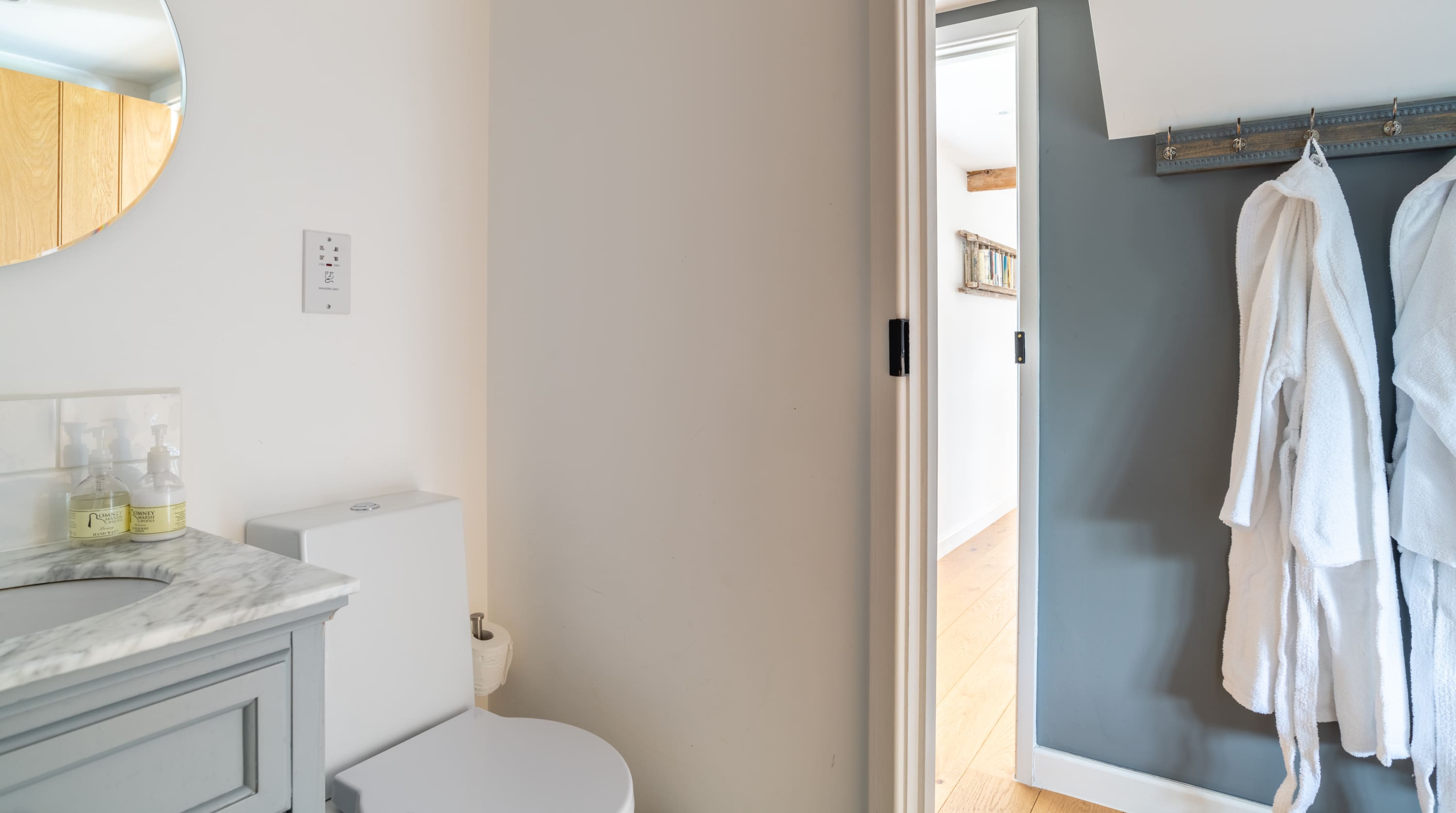 The interior of this luxury house rental in Kent is as inviting as it is stylish. With four beautifully appointed bedrooms, including a versatile super king-size bed that can be converted into twin beds, comfort is guaranteed. The three bathrooms, one featuring a sumptuous clawfoot tub, ensure ample space for relaxation. The open-plan living area boasts a cozy log burner, perfect for gathering with loved ones, while the fully equipped kitchen makes meal preparations a joy.