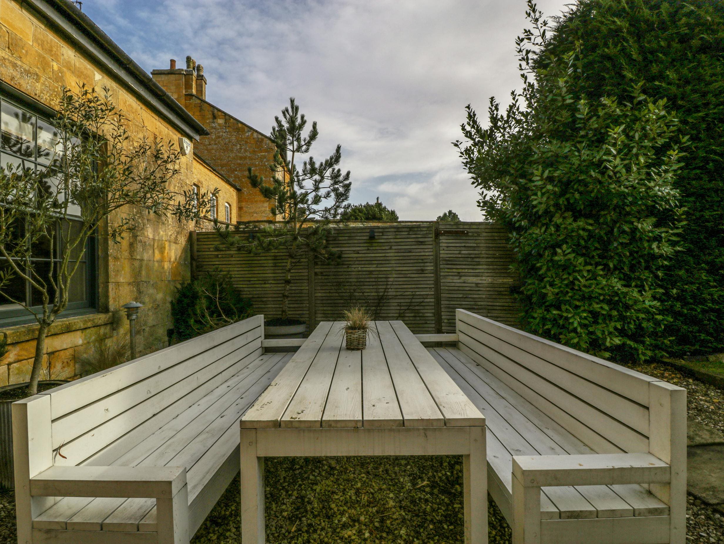 The private garden provides a tranquil setting for relaxation, with a terrace perfect for al fresco dining or evening cocktails. The lush surroundings and well-maintained outdoor space offer a serene backdrop for your stay in Gloucestershire.