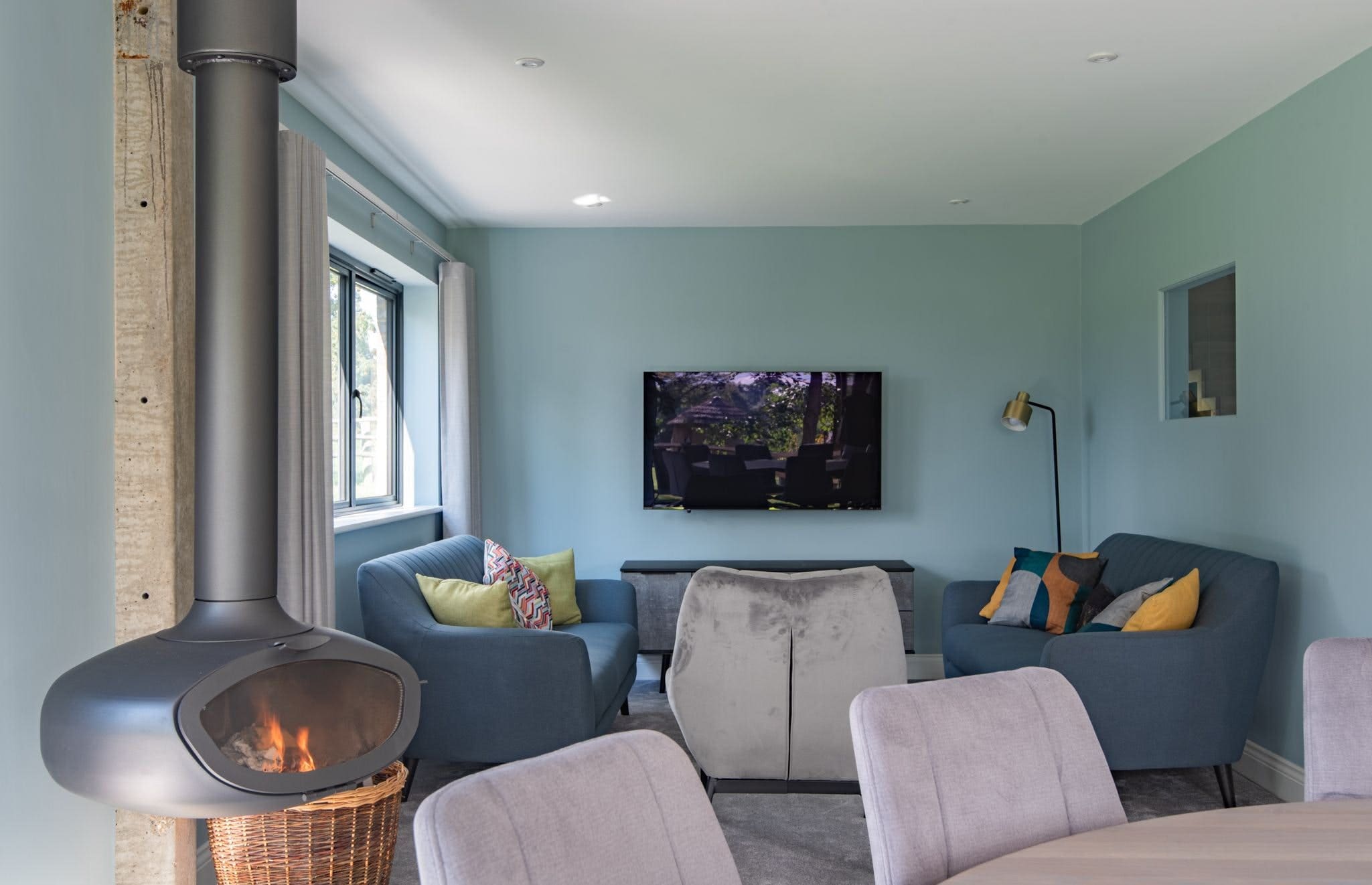 Spread over two floors, this expansive apartment features five beautifully appointed bedrooms and four modern bathrooms, comfortably accommodating up to ten guests. The interiors exude a warm yet sophisticated charm, with a cosy living room equipped with a fireplace, ideal for gathering after a day exploring the countryside. The kitchen is fully equipped for gourmet meals, and the dining area serves as a convenient workspace if needed. Families will appreciate the games room, complete with table football, darts, and ping pong, while the home cinema room offers a unique entertainment experience with its twinkling star effect ceiling.