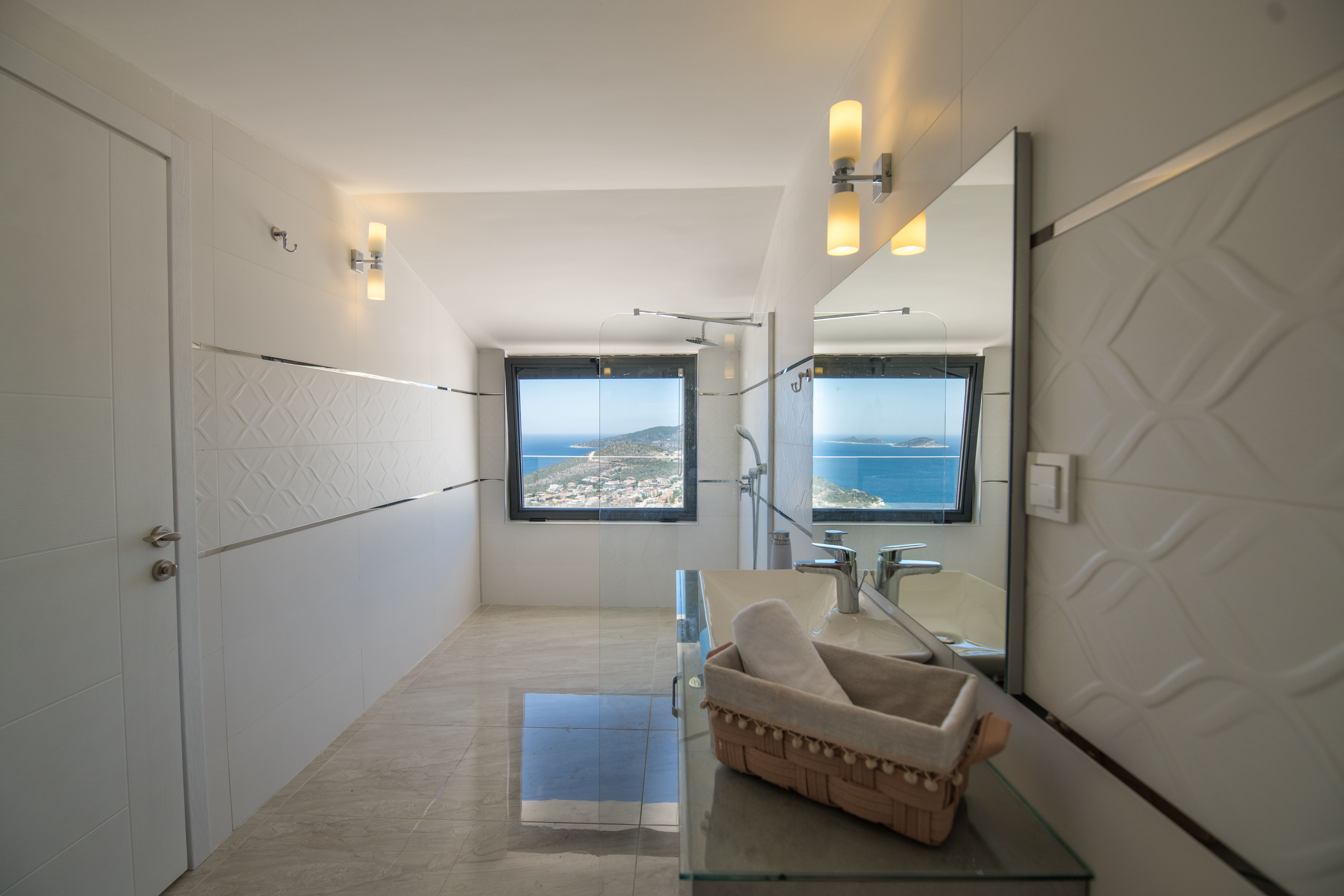 Spread over two exquisite floors, Kalkan Gözlemevi offers an impressive living space that combines modern design with luxurious comfort. The open-plan living area is adorned with large glass doors, allowing natural light to flood in and providing seamless access to the outdoor terraces. The sleek, fully-equipped kitchen is perfect for preparing gourmet meals, while the plush bedrooms, each with en-suite bathrooms, ensure a restful night’s sleep for all guests. Every corner of this villa has been thoughtfully designed, from the elegant furnishings to the high-end finishes, reflecting a commitment to quality and style.