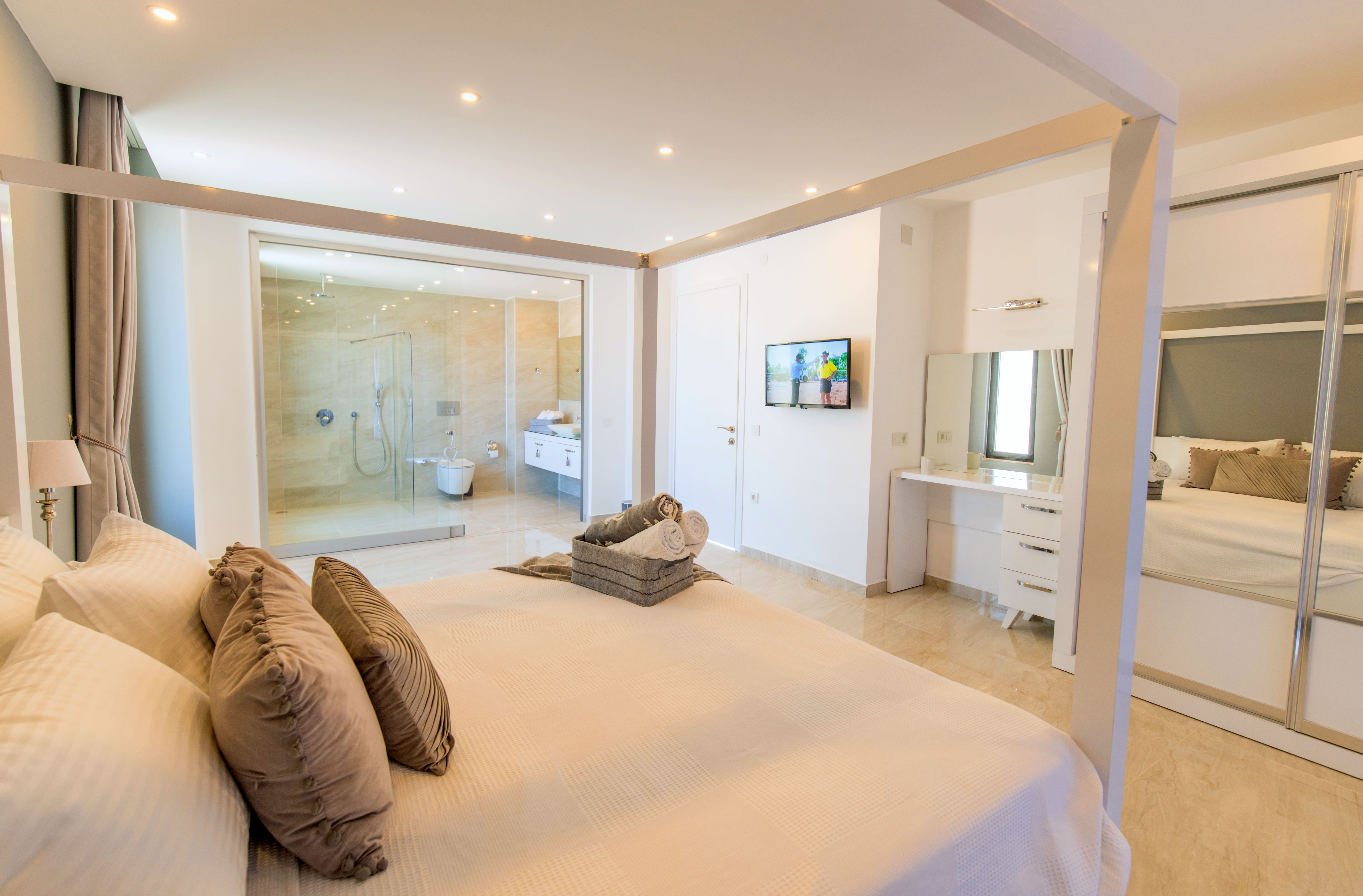 This luxury villa rental in Antalya features 5 spacious bedrooms and 5 modern bathrooms, making it perfect for larger families or groups. Guests will enjoy the convenience of air conditioning, a gym/fitness room, and parking facilities. Please note that the villa is spread over two floors, which may not be suitable for guests with reduced mobility. Browse our luxury villa rentals in Turkey for more properties.