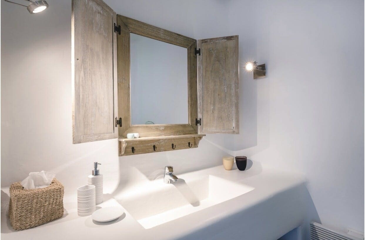Kastro Thalassia features a harmonious blend of modern comfort and classic Cycladic architecture. The interior boasts expansive living spaces filled with natural light, showcasing high ceilings and elegant furnishings that create an inviting atmosphere. With 7 well-appointed bedrooms and 7 luxurious bathrooms, this villa comfortably accommodates up to 14 guests. The open-plan kitchen is a chef’s dream, equipped with top-of-the-line appliances and ample counter space, perfect for preparing delightful meals. The interiors are adorned with tasteful decor, reflecting the island’s charm while providing a serene escape.
