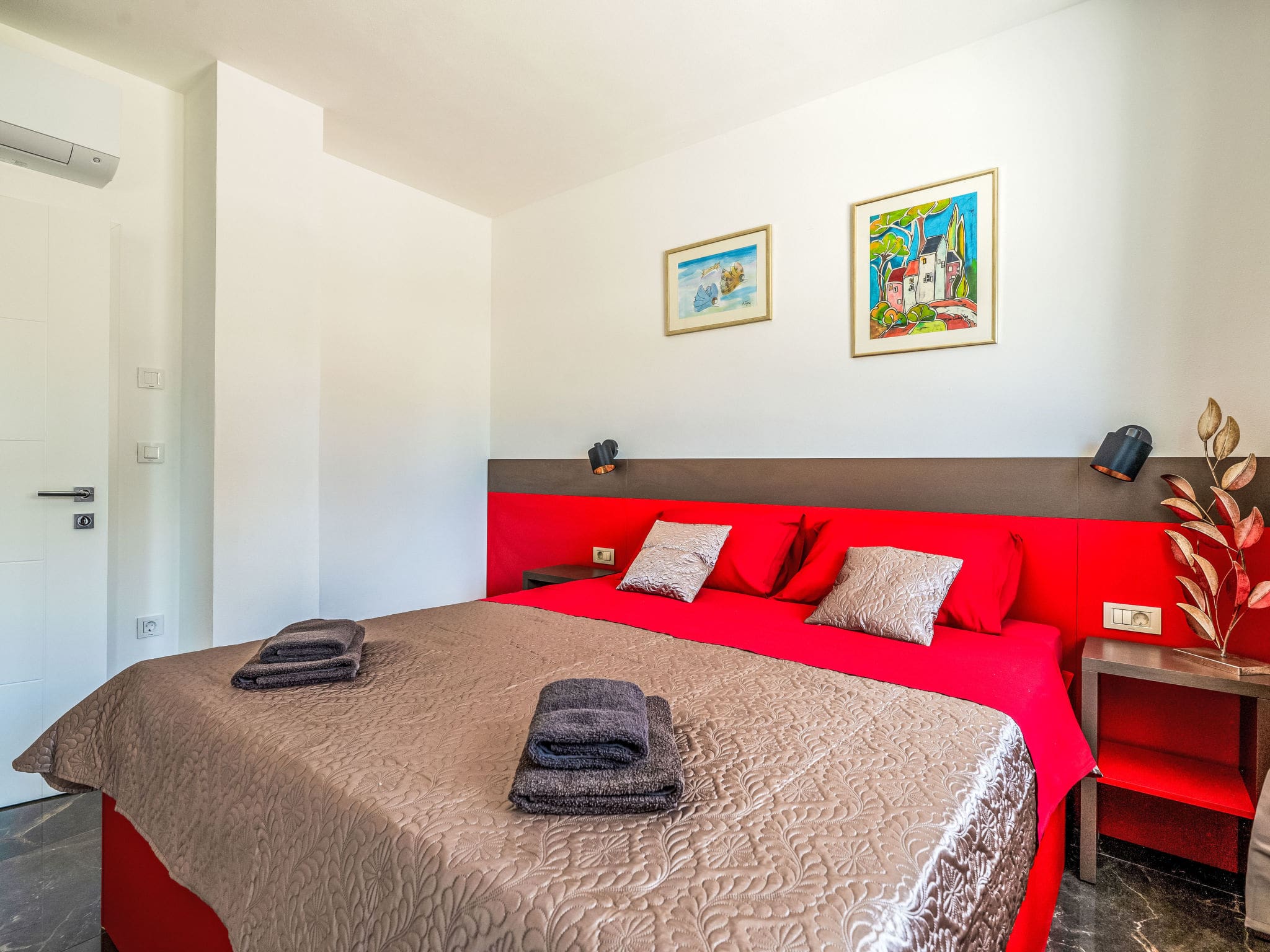 Upstairs, two additional bedrooms each provide stunning sea views through panoramic windows and private terrace access. The larger room features a French bed and single sofa bed, while the second bedroom offers a French bed with breathtaking vistas. Both rooms include en-suite facilities, with one bathroom featuring a bidet, and all rooms maintain comfortable temperatures with individual air conditioning units.