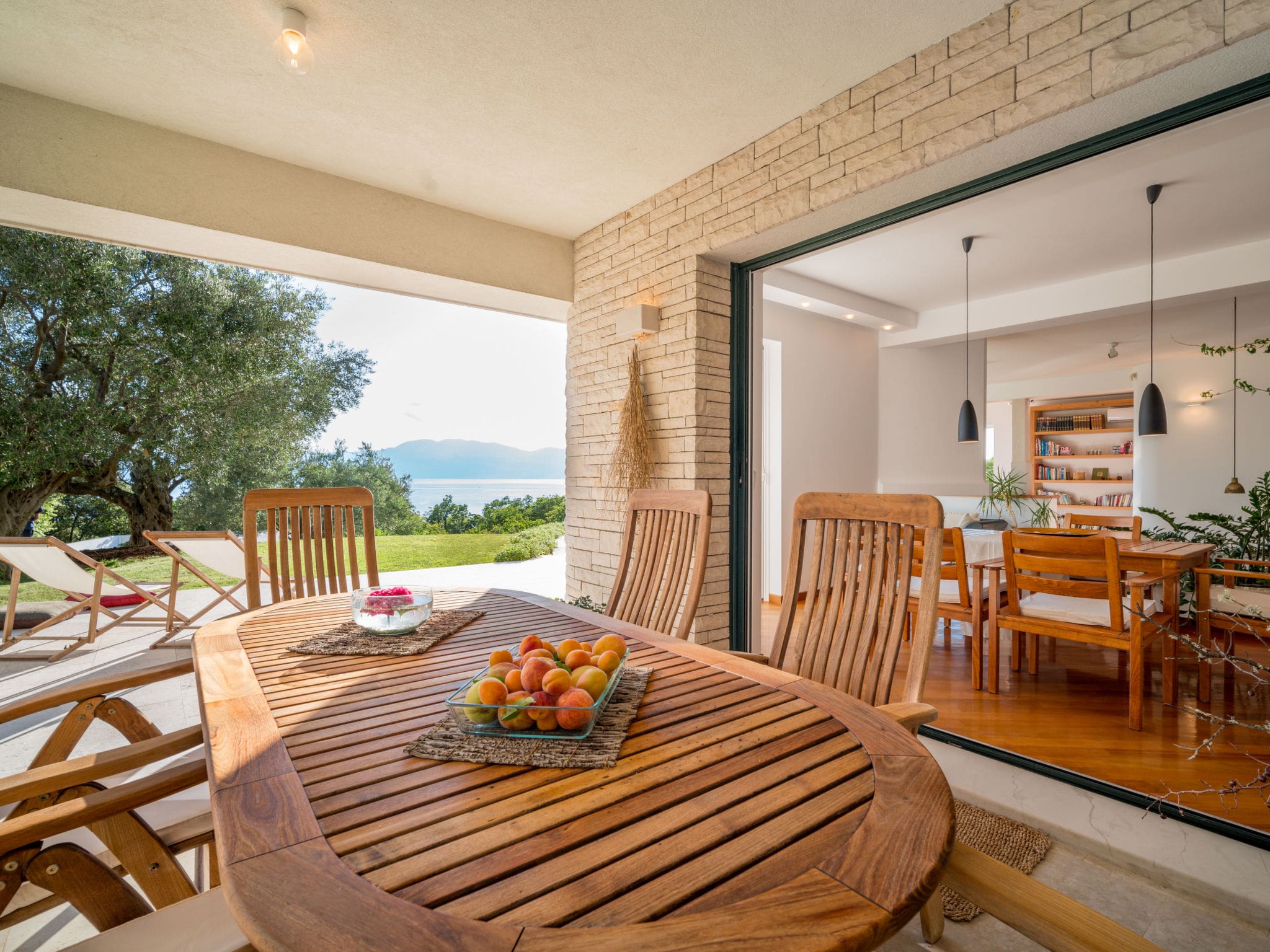 The villa’s outdoor spaces truly set it apart, with nearly 100 square metres of terrace space spread across multiple levels. The main terrace offers both covered and open areas, perfect for dining al fresco or simply relaxing while taking in the panoramic sea views. A portable barbecue allows for outdoor cooking, while comfortable deck chairs provide the perfect spot for afternoon lounging.