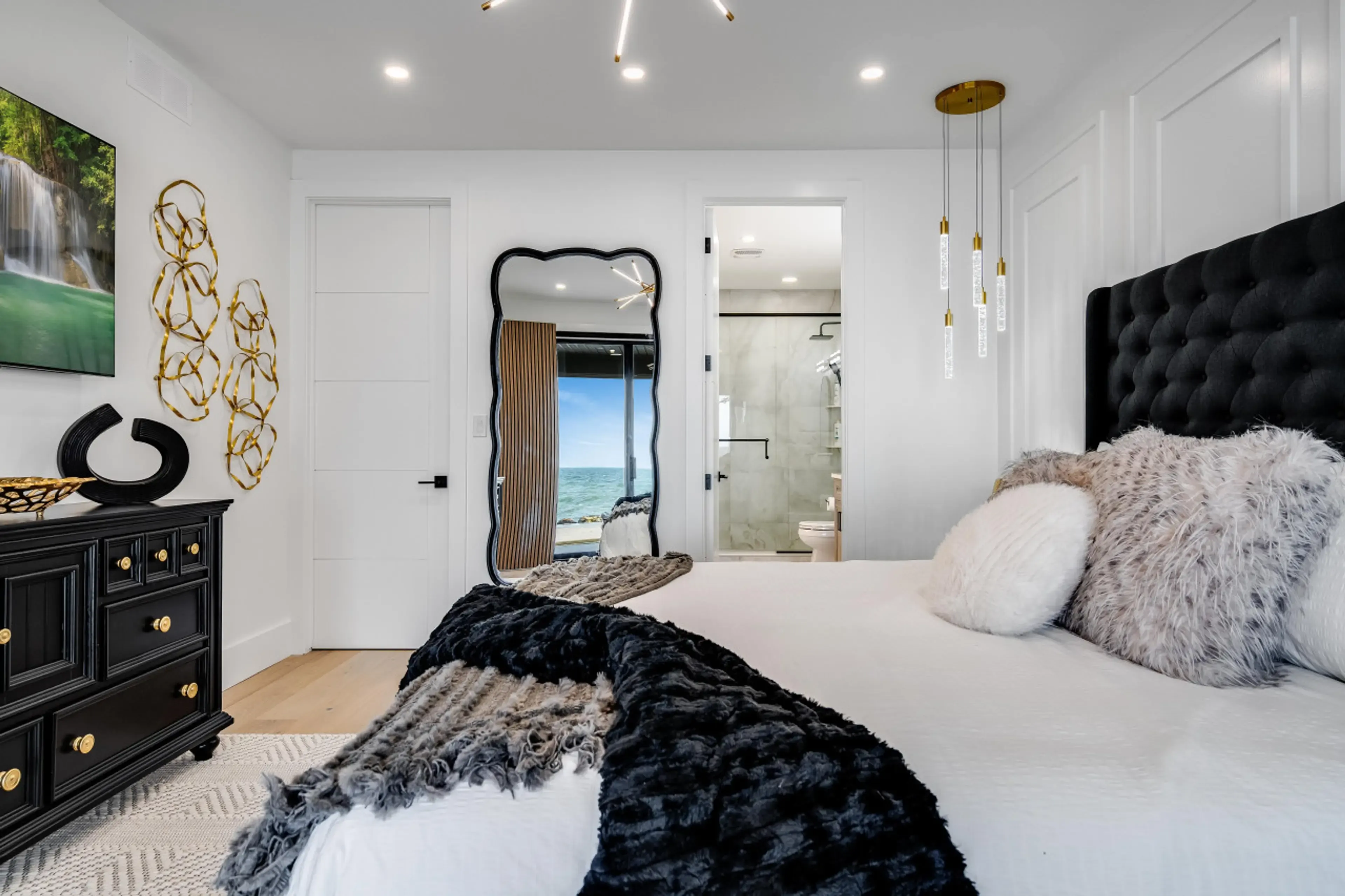 This stunning golf villa rental Essex County captures the essence of waterfront luxury with its prime Lake Erie position and championship course access. Spanning 6 bedrooms and accommodating 14 guests, this contemporary retreat combines sophisticated design with family-friendly amenities across multiple levels of refined living space.