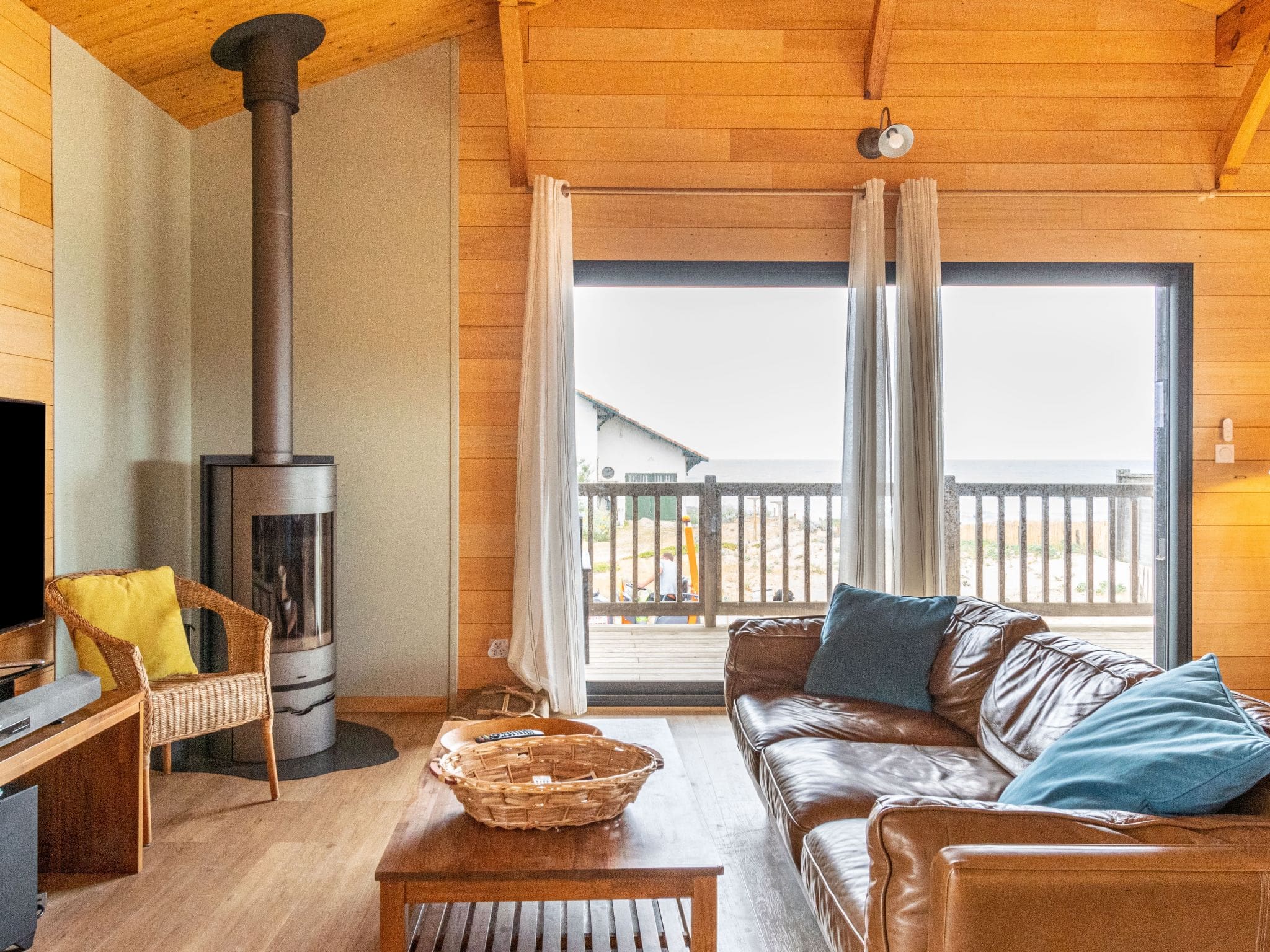 The property sits on 450 square metres of natural grounds within a peaceful cul-de-sac setting, offering privacy and tranquillity just moments from the beach. The elevated balcony provides the perfect vantage point for morning coffee while watching the sunrise over the Atlantic, with comfortable outdoor furniture creating an ideal spot for al fresco dining. Dedicated bicycle storage encourages exploration of the extensive Landes cycling network, while on-site parking ensures convenience for those arriving by car.