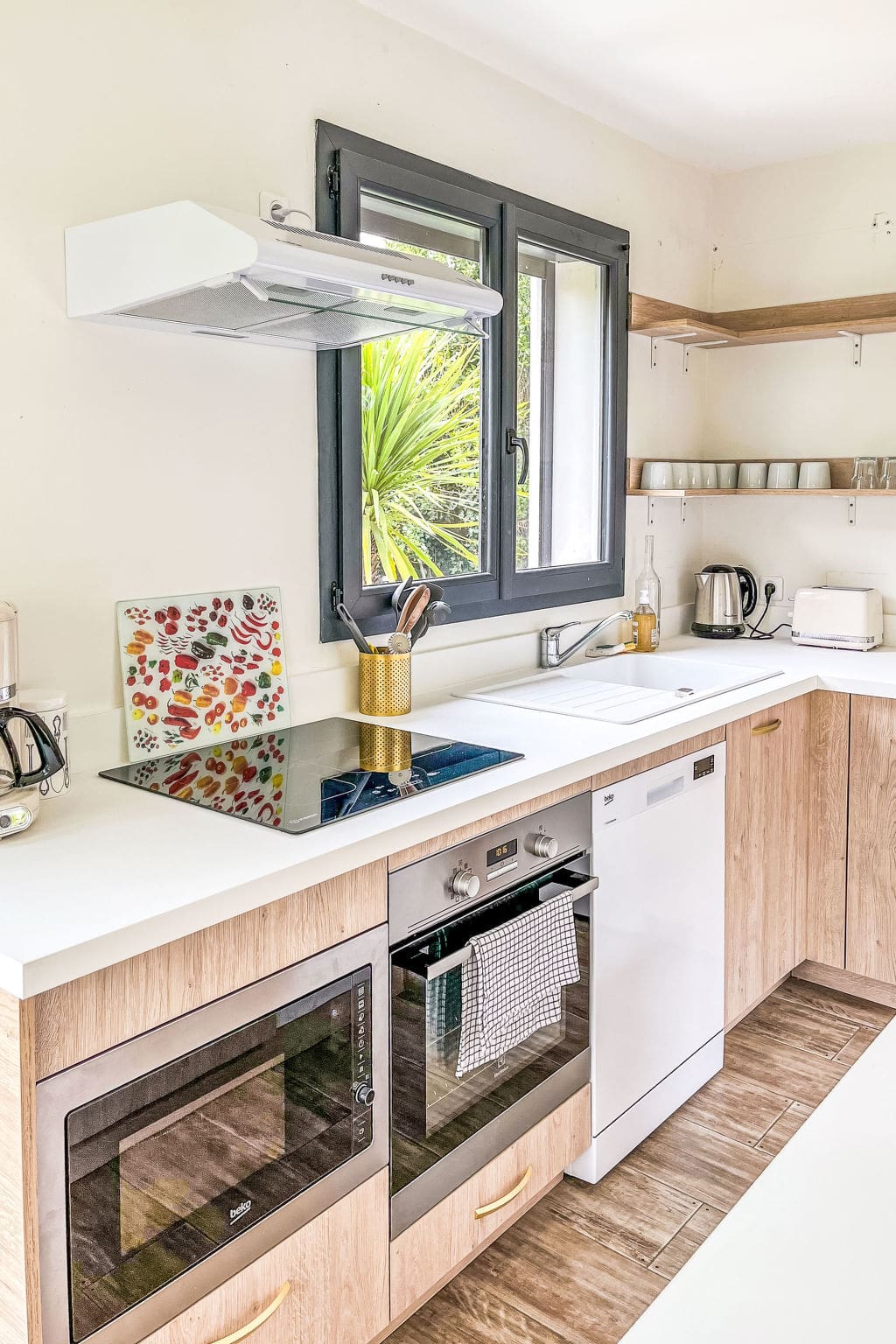 Spanning 103 square metres across a single level, this beautifully appointed residence welcomes guests with comfortable and stylish interiors throughout its five thoughtfully designed rooms. The heart of the home features an elegant dining area that flows seamlessly to multiple outdoor spaces, including a charming terrace, peaceful loggia, and lush garden areas. Two ground-floor bedrooms offer luxurious French beds and private en-suite facilities, with one featuring a hand-basin and shower, while the other provides a full bathroom with shower and WC. The fully equipped modern kitchen includes premium appliances including dishwasher, ceramic hob, microwave, and electric coffee machine, perfect for preparing family meals or entertaining guests.