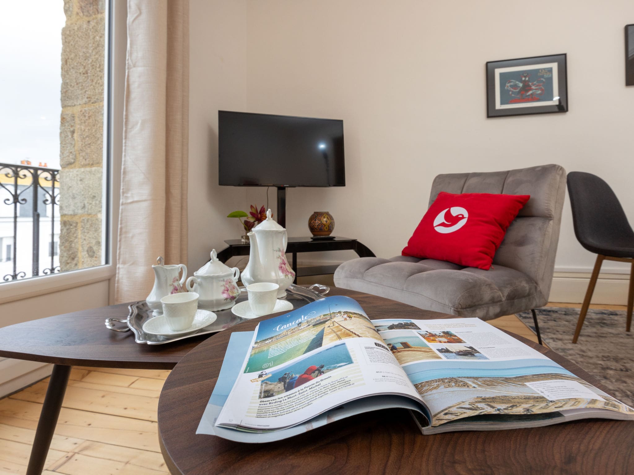 While the apartment features no private outdoor space, its prime location places guests mere steps from Sillon Beach, one of Brittany’s finest stretches of sand. The building’s sunny position ensures excellent natural light throughout the day, while double-glazed windows provide peaceful nights despite the central location. The nearby promenade offers perfect morning walks along the coast, with the historic ramparts of Saint-Malo creating a dramatic backdrop against the sea.