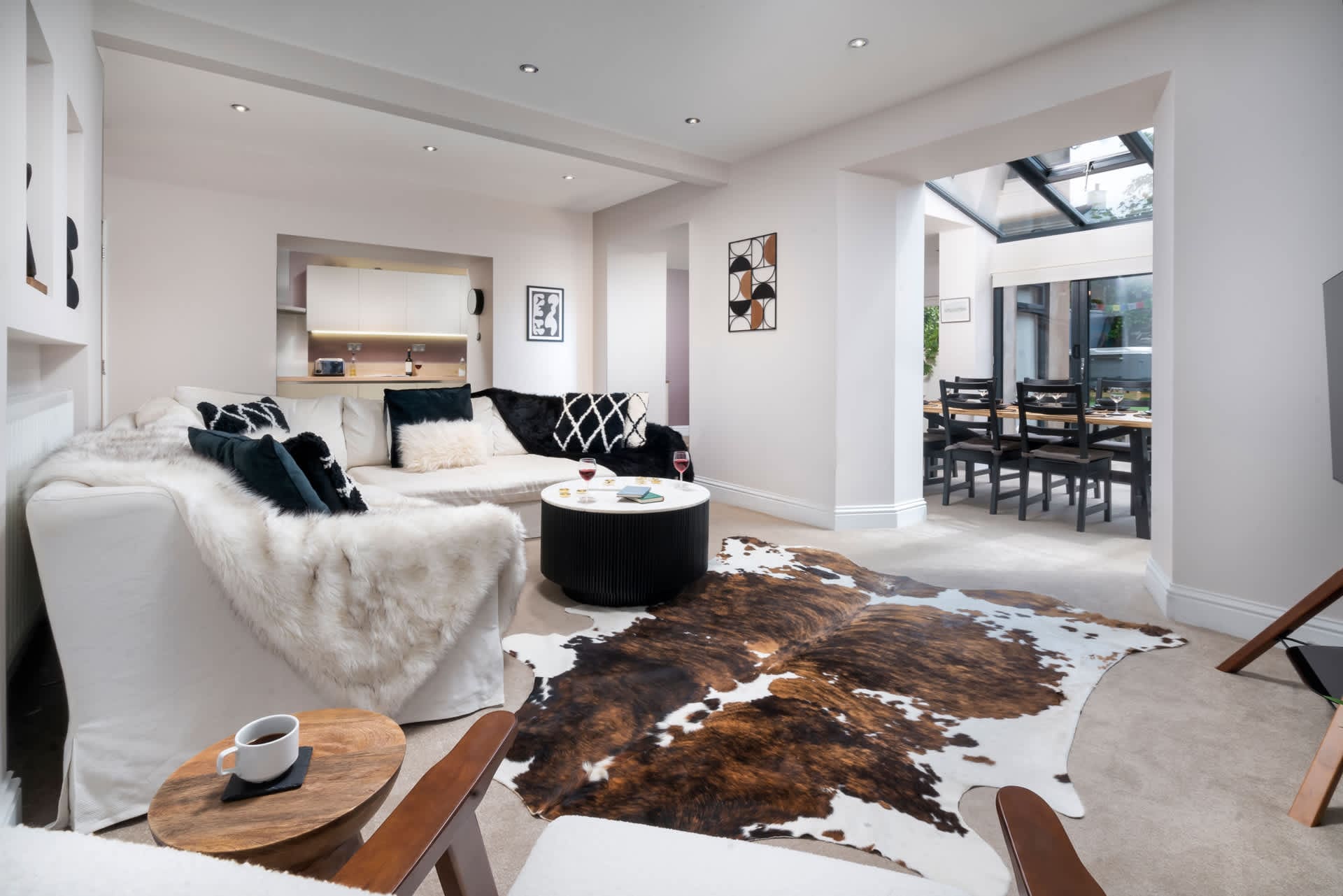 The villa accommodates up to six guests across three bedrooms and bathrooms. There is parking available for four cars. Note that there are stairs, making it less suitable for those with reduced mobility. Pets are welcome, ensuring everyone in the family can enjoy the holiday. Browse our luxury villa rentals in United Kingdom for more properties.