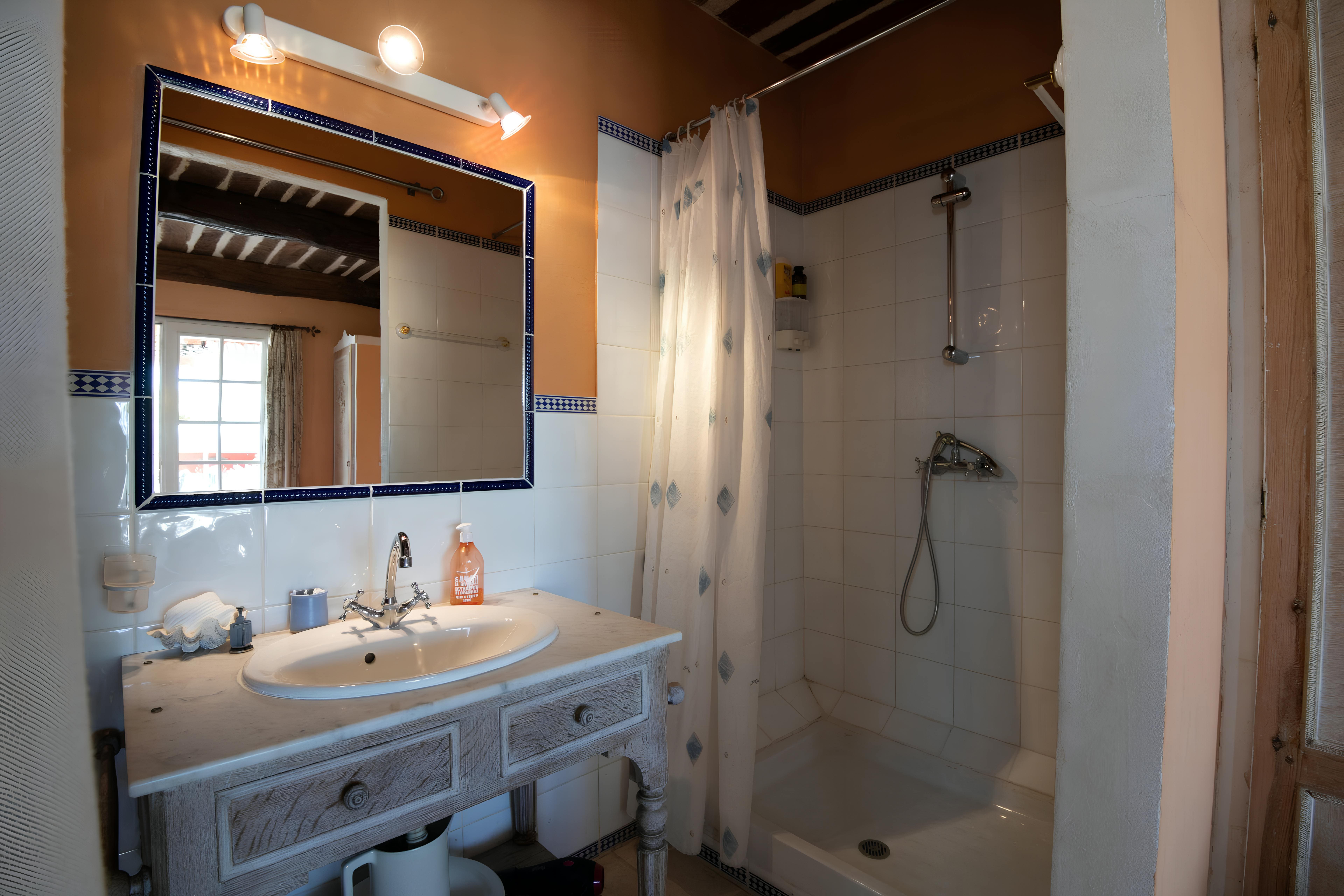 The interior of this villa is a testament to traditional French charm, with each room offering a unique blend of comfort and style. The main house features two beautifully appointed bedrooms, equipped with air conditioning for your comfort. The spacious living room, adorned with a ceiling fan, provides a cozy retreat with its classic decor. The kitchen is fully equipped, perfect for preparing family meals. An additional double bedroom with an en-suite shower is situated in a separate annexe, providing privacy and convenience for guests.