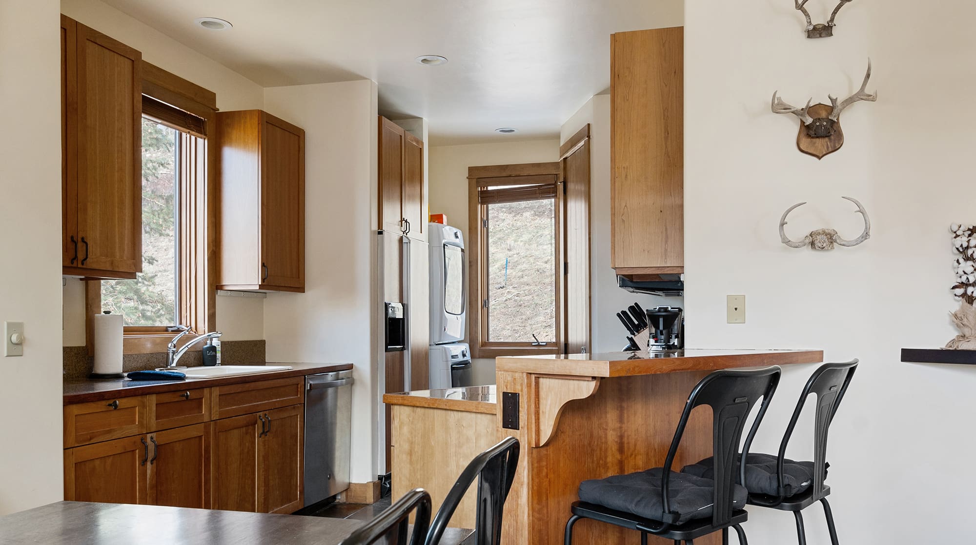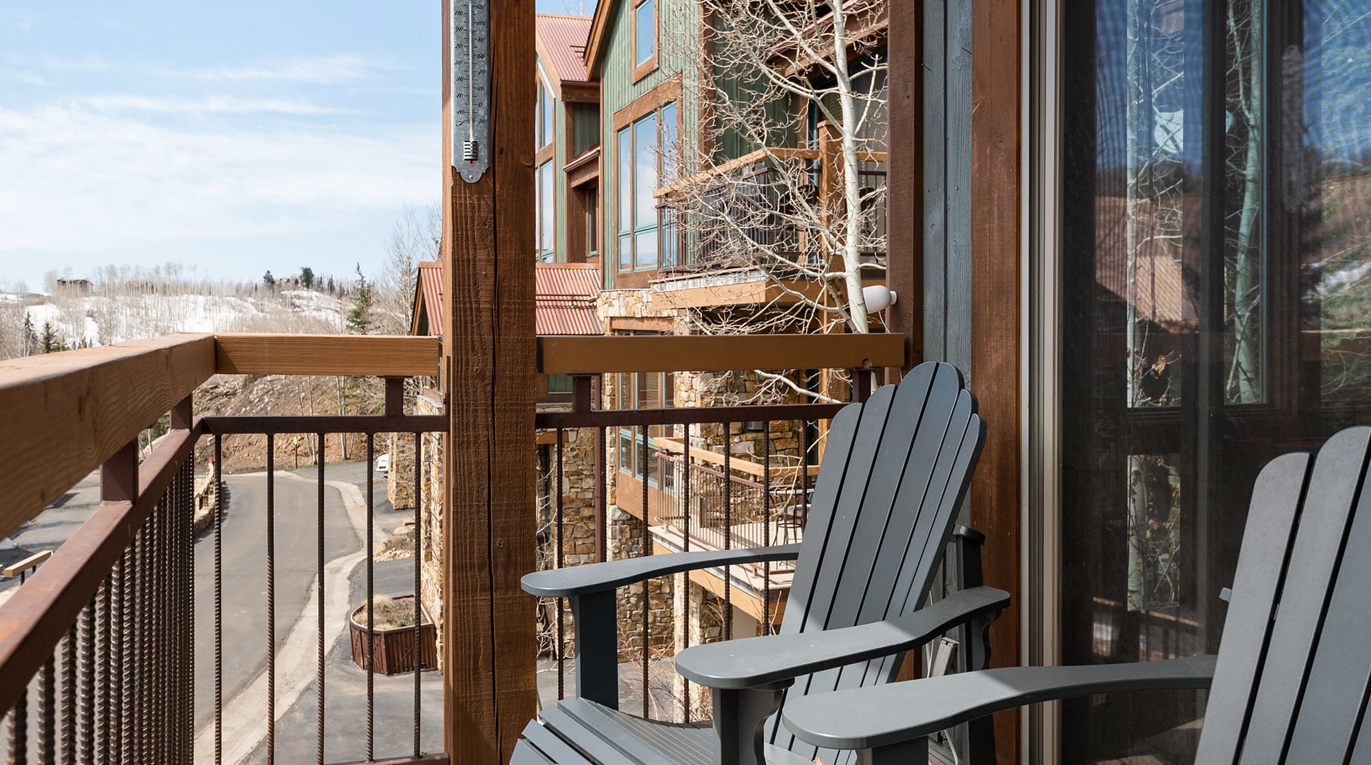 Step onto the private balcony to breathe in crisp mountain air while enjoying unobstructed views of the surrounding peaks. The outdoor gas grill transforms alfresco dining into a memorable experience, whether you’re preparing breakfast before hitting the slopes or evening barbecues under starlit skies. French doors connect indoor and outdoor living spaces, allowing you to monitor snow conditions and mountain weather from the comfort of your retreat.